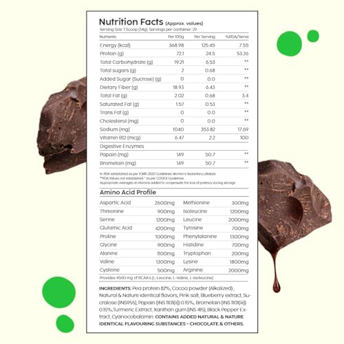 One of the best plant protein available in the market, cover mostly all the amino acids along with vitamins and digestive enzymes. You can have it as your breakfast, makes you feel full so you are unlikely to have any junk food. One scoop every day is enough along with a proper diet to reach your daily goal of protein requirements.Will definitely recommend this product to everyone.