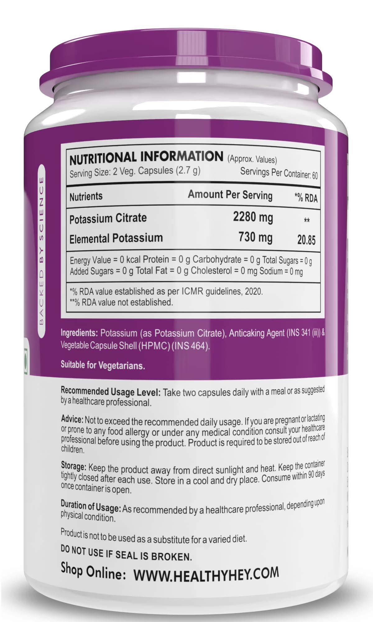HealthyHey Nutrition Potassium Citrate -120 Vegetable Capsules