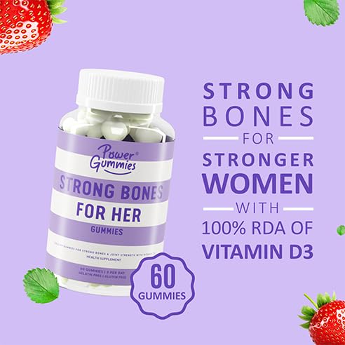 Power Gummies Strong Bones for Her-Vitamin D3 & Calcium with Strawberry Flavour-60 gummies