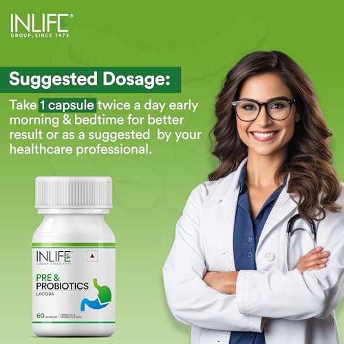 INLIFE Pre & Probiotics Capsules has two highly researched strains of beneficial bacteria- Bifidobacterium and Lactobacillus. And it also has multiple highly beneficial strains that are essential to support your digestive system. Probiotics are the living organisms which when administered in adequate amounts confer health benefits. They are friendly beneficial bacteria that maintain a healthy environment between the beneficial flora and bad bacteria. The good bacteria which get depleted due to medication poor diet and aging can be replenished by taking probiotic capsules. Prebiotics act as fuel to probiotics and are non-digestible foods that make their way through our digestive system and help good bacteria grow and flourish. Suggested usage: Take 2 capsule twice daily after meals or as directed by a healthcare professional.
