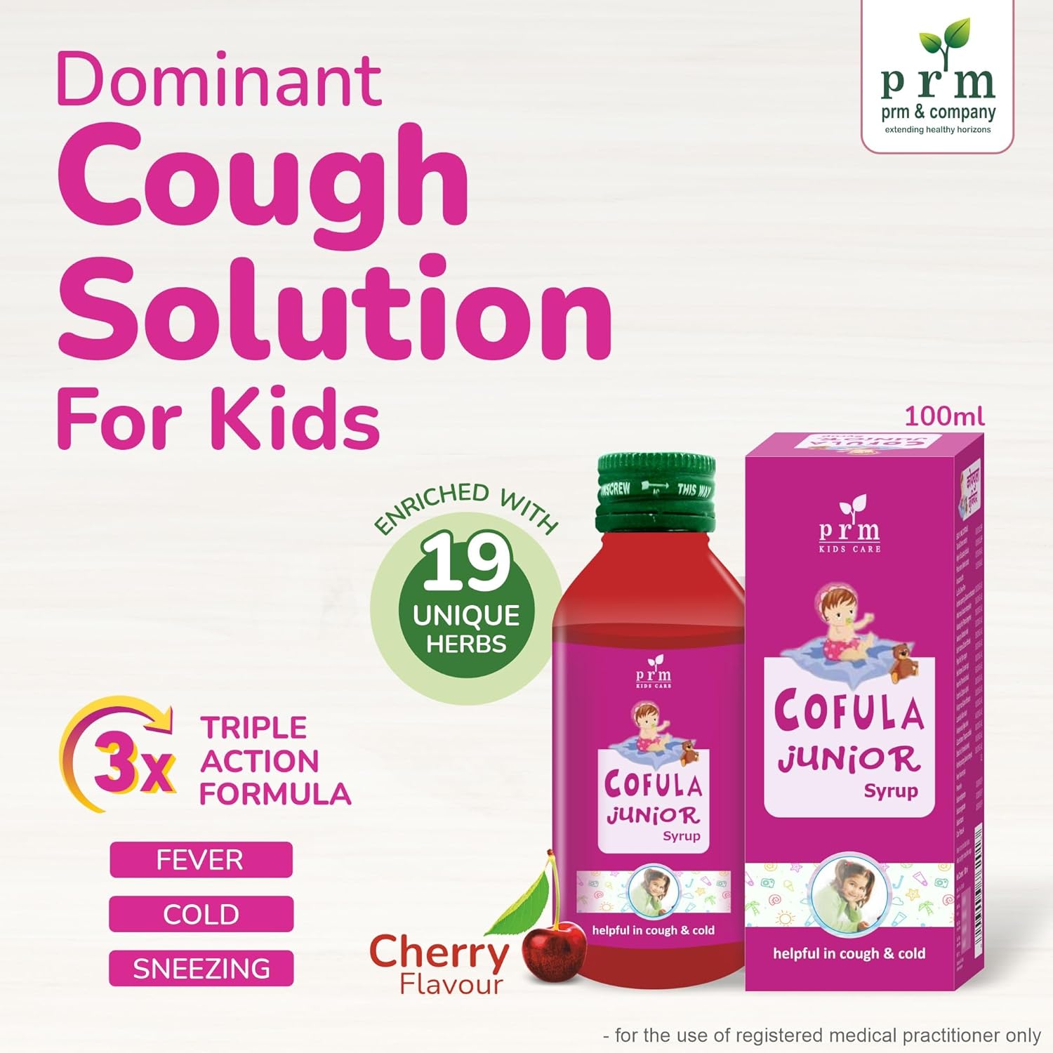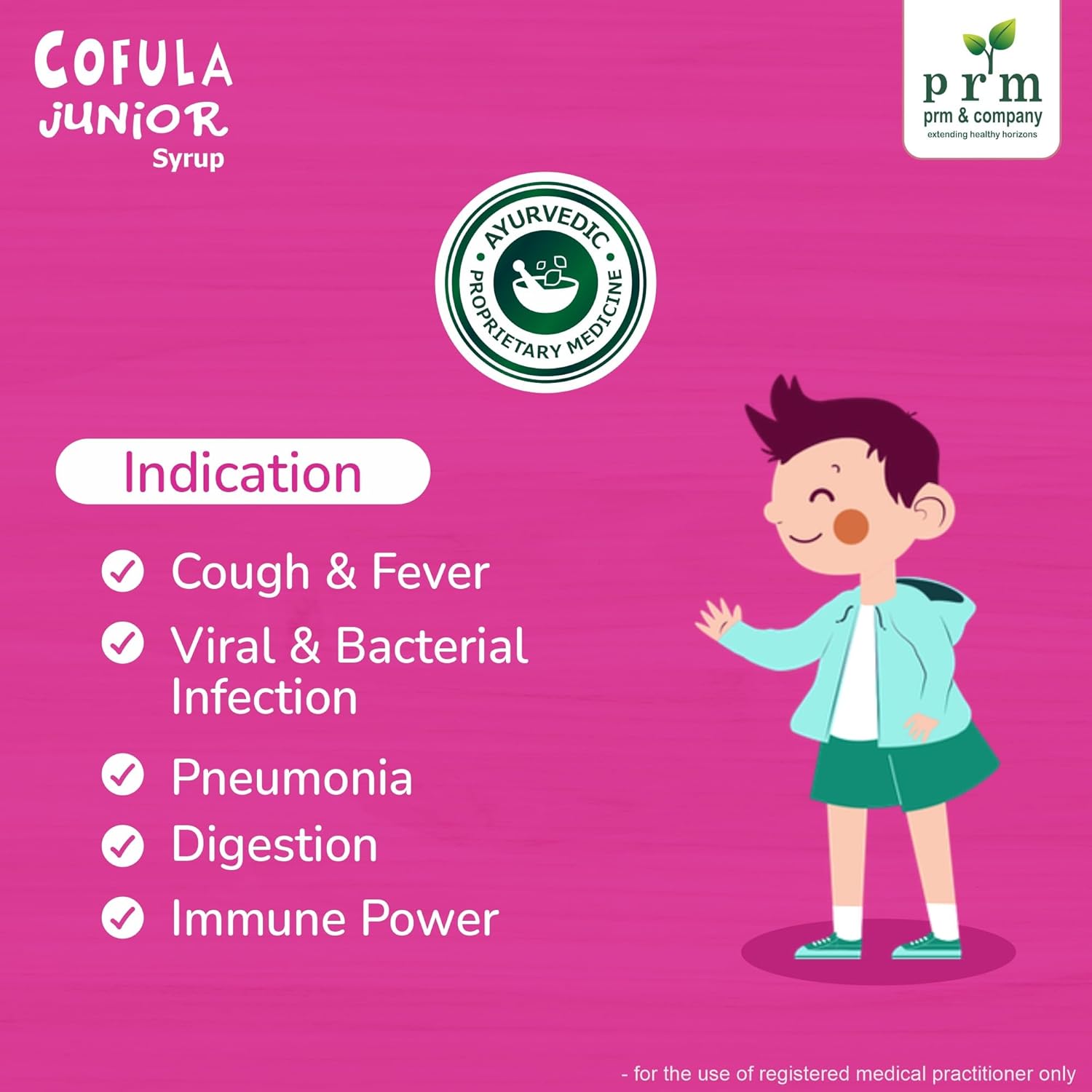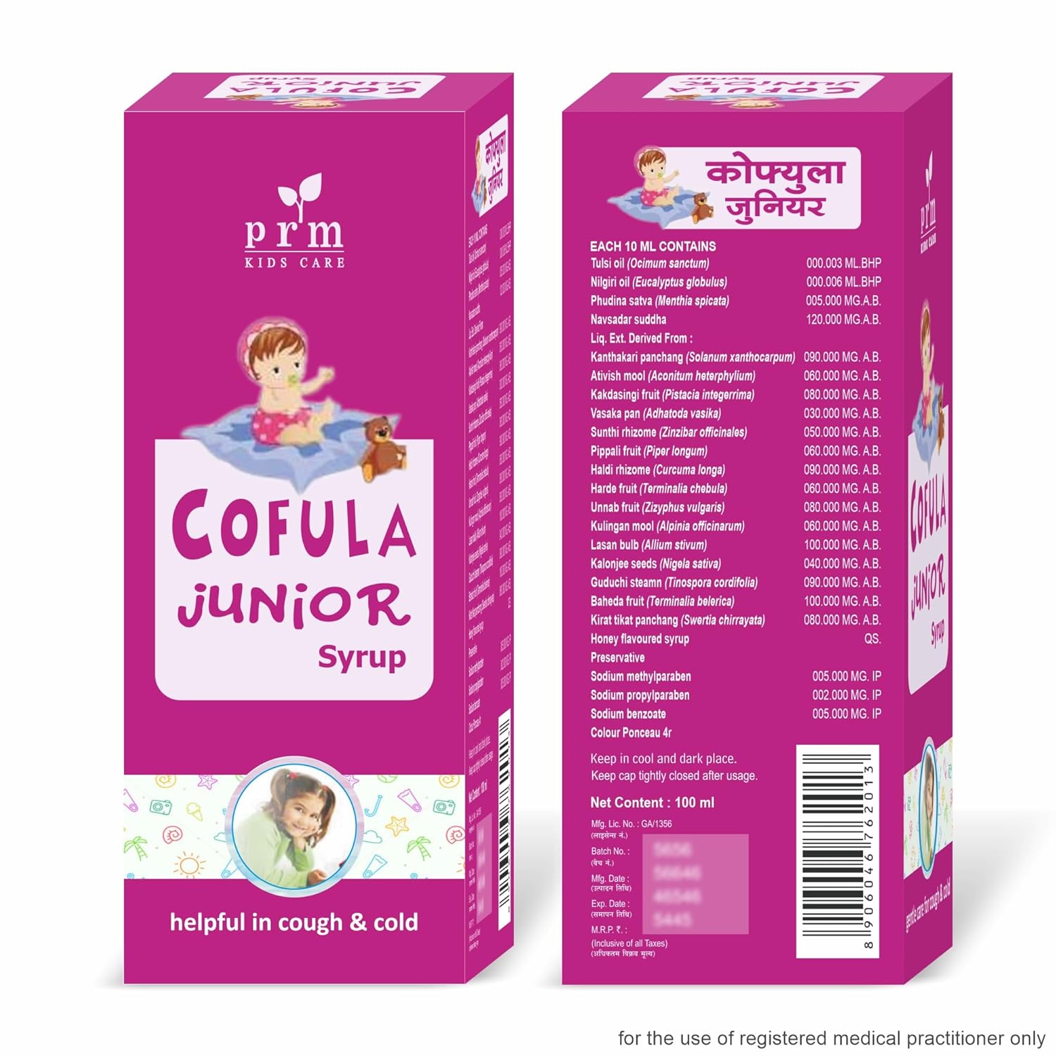 PRM & Company present to you a 100% authentic ayurvedic cough syrup for children and infants - Cofula Junior. Cofula junior syrup gives instant relief from cough, cold, sneezing, sore throat and normal fever. Cofula junior syrup enriched with 20 natural herbs namely Tulsi oil, Nilgiri Oil, Vasaka pan, sunthi rhizome, Haldi rhizome and more
