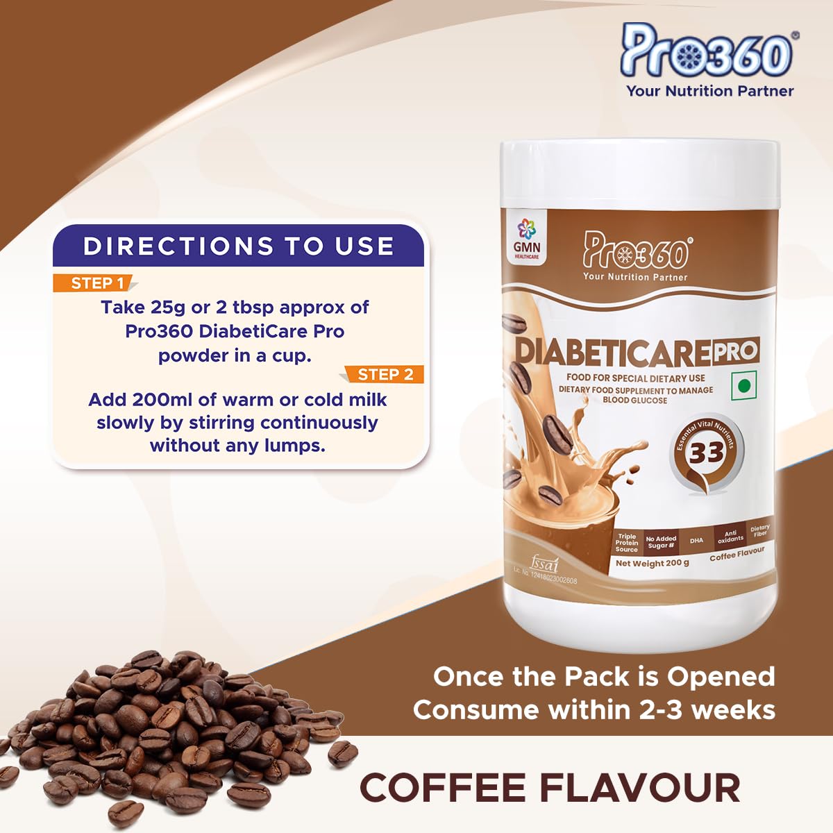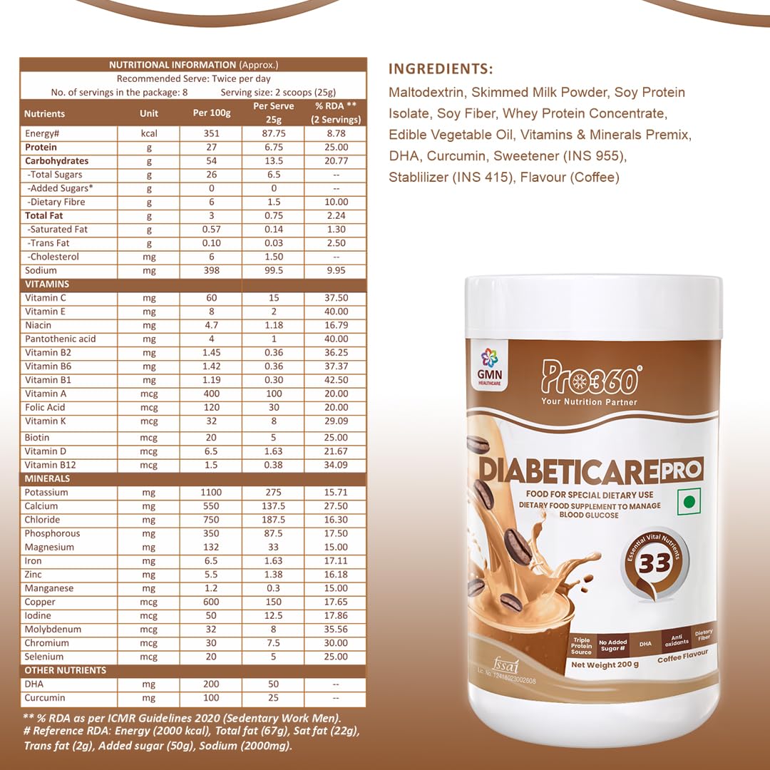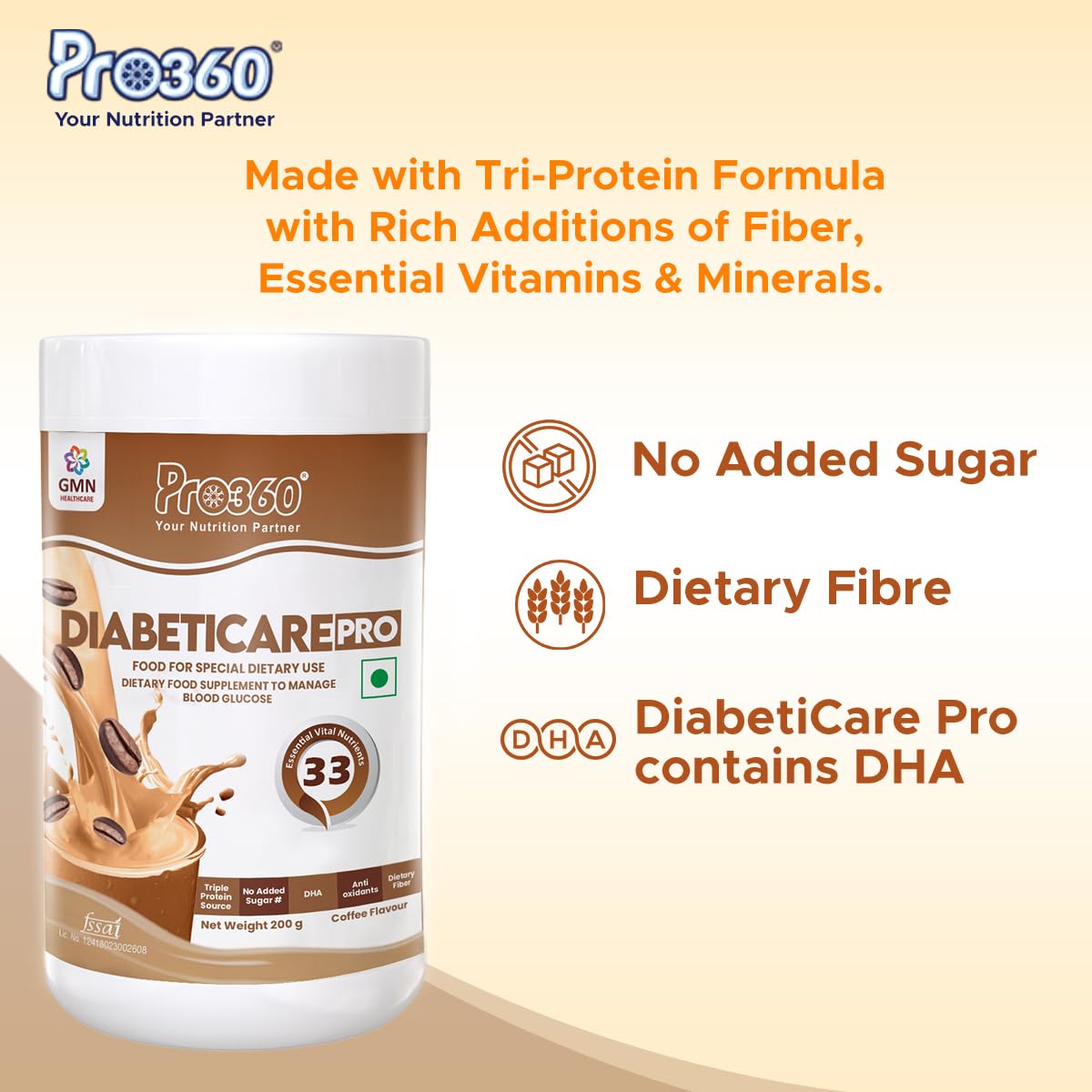 You go over to a friends house and you see a plate of ladoos staring right at you but you had to suppress the temptation. Having diabetes can seriously take away lot of fun parts like having a good tasting meal out of your life. Pro 360 nutritional protein drink with natural almonds is there to fulfil your cravings in a healthy nourishing and delicious manner. The tri-protein formula consisting of skimmed milk powder whey protein and soy makes for an amazing amount of protein packed in a low calorie low fat meal with no added sugar. A diabetes-friendly meal to provide you with nourishment sugar control and healthy perks accompanied with the delight of delicious taste.