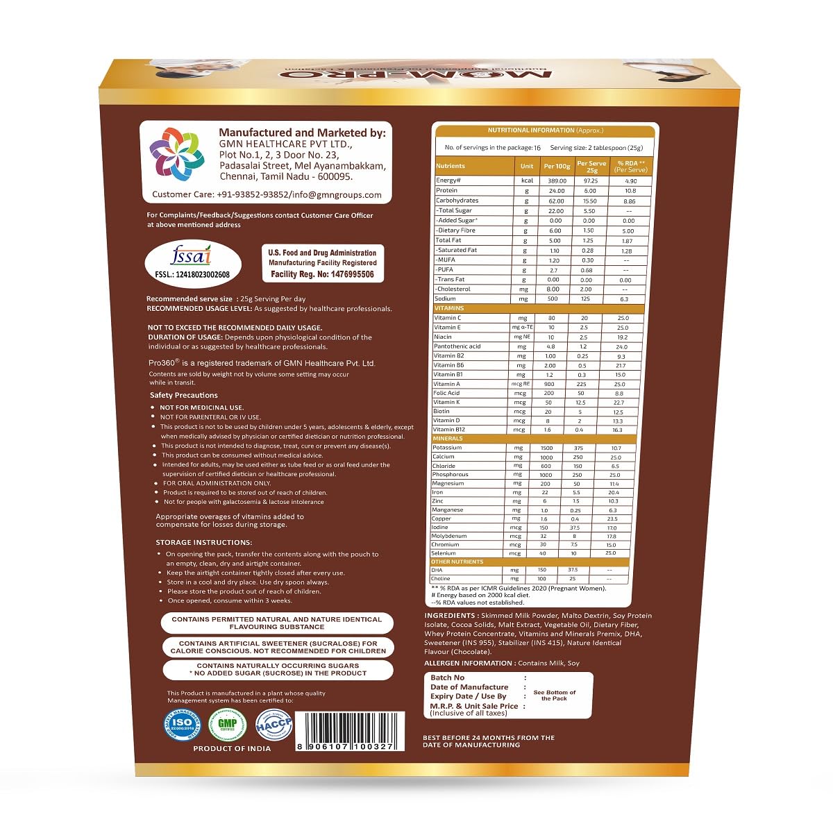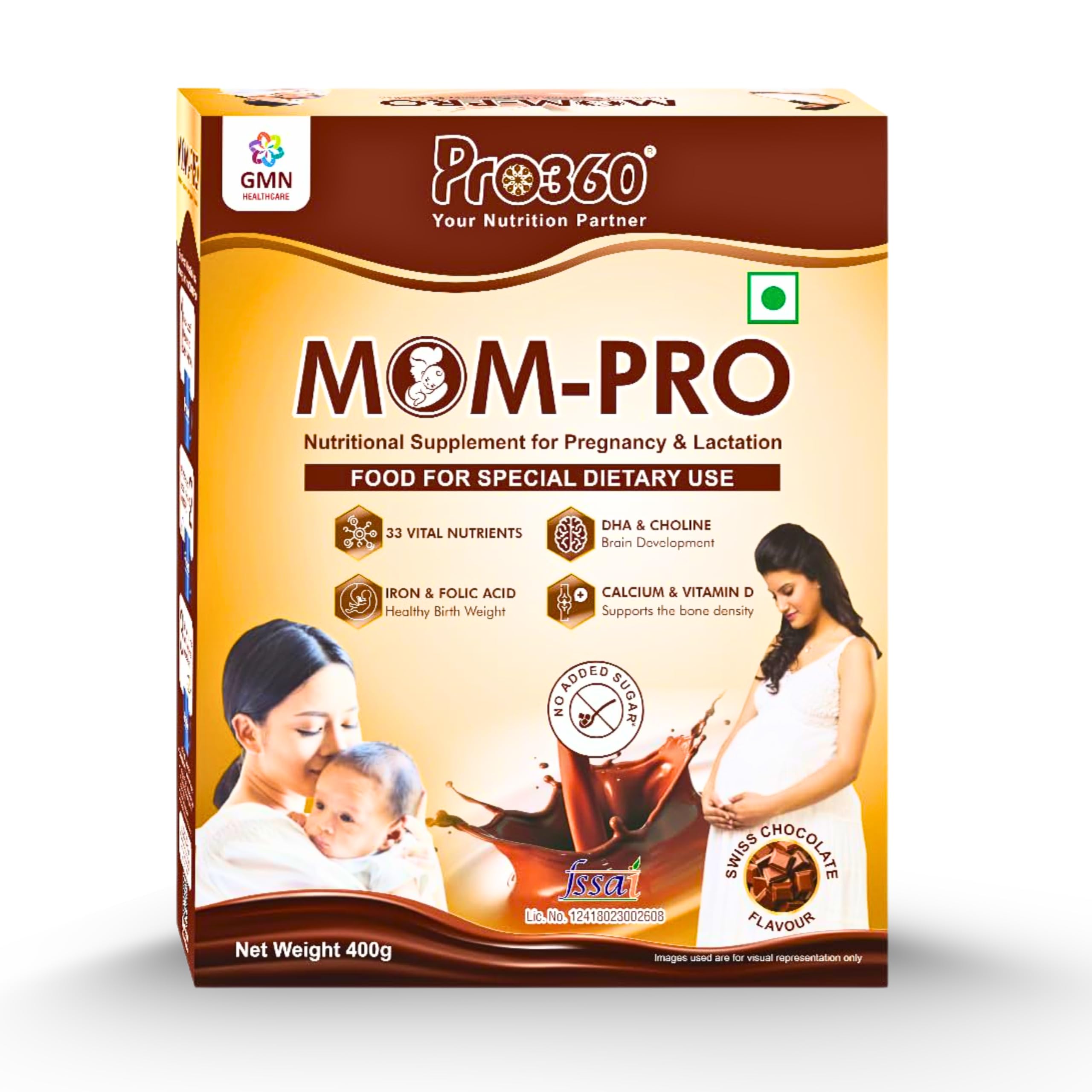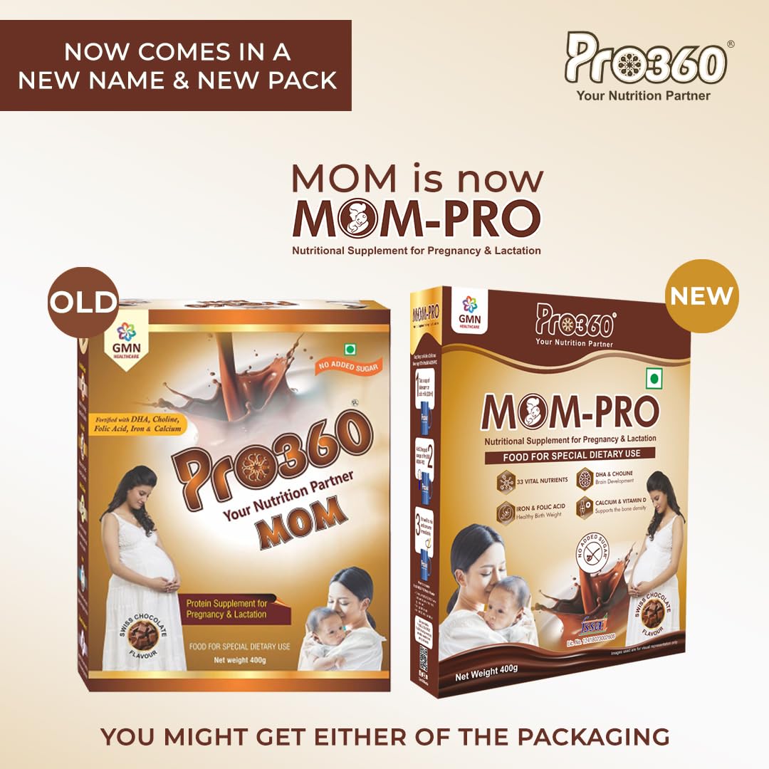 Pro360 MOM-Pro Protein Powder for Pregnant Women | 400gm Swiss Chocolate Flavour Nutritional Powder for Pregnancy | Mother Protein Powder | Vital Nutrients to Support Baby Brain Development