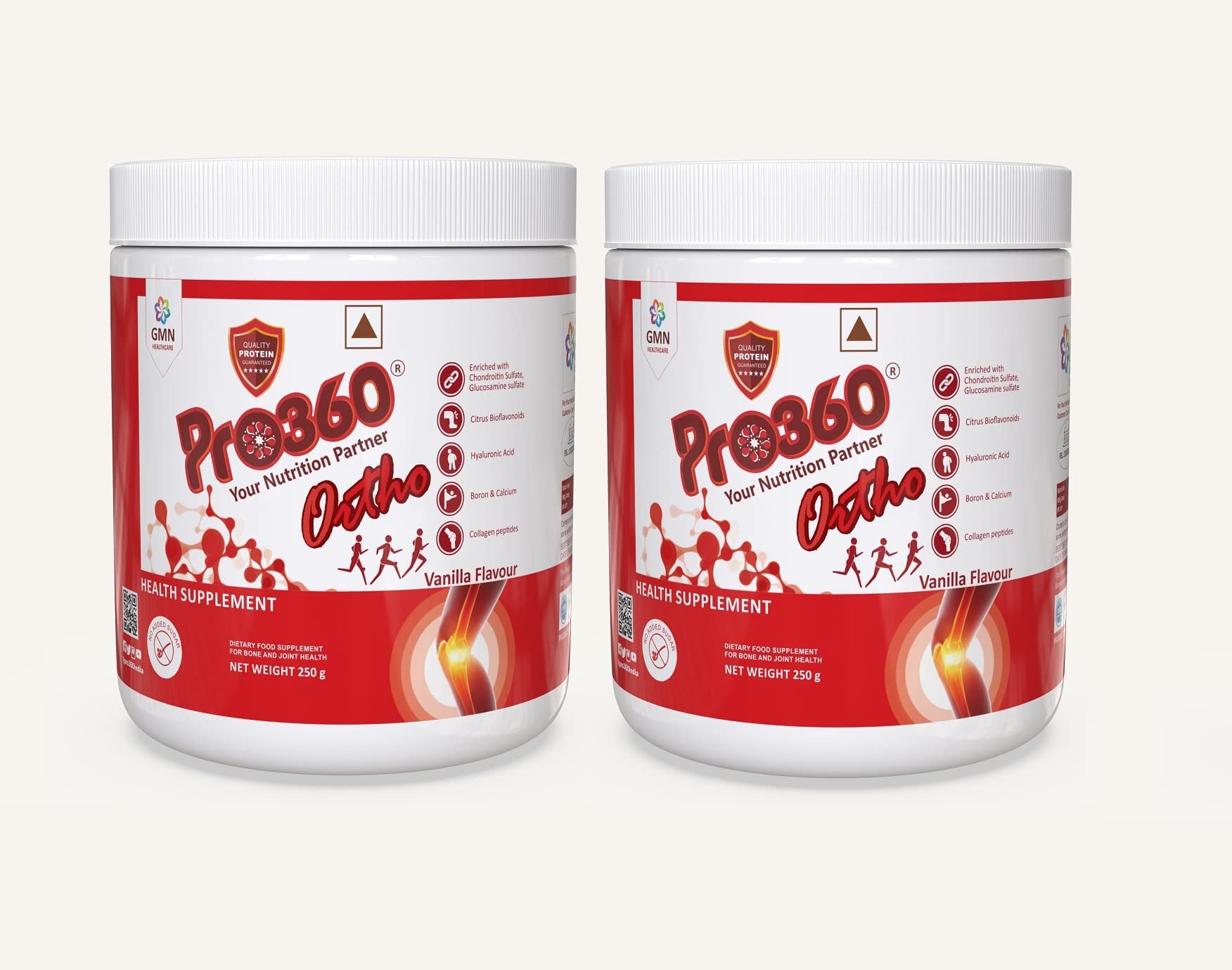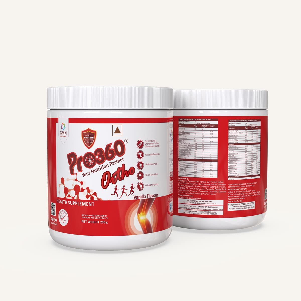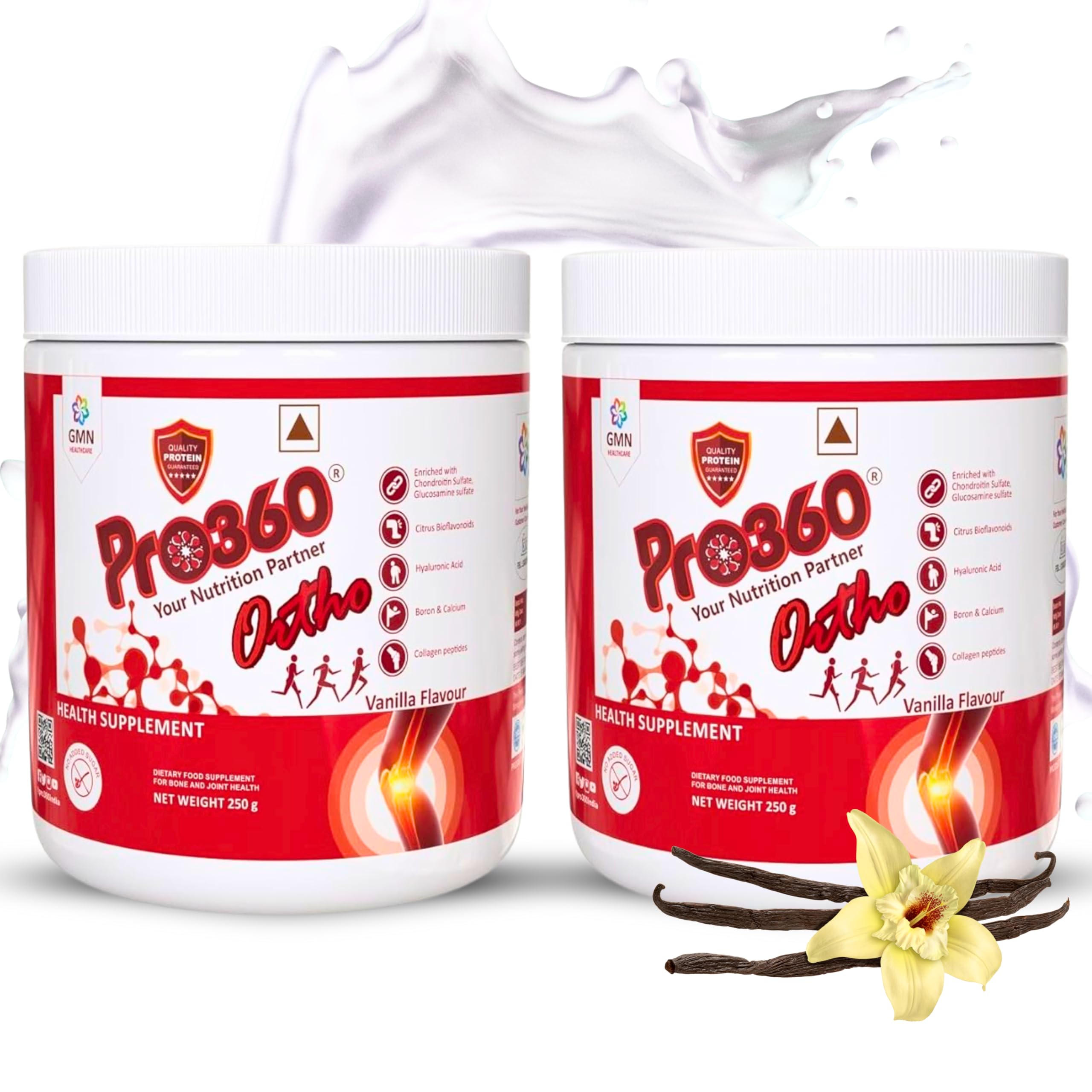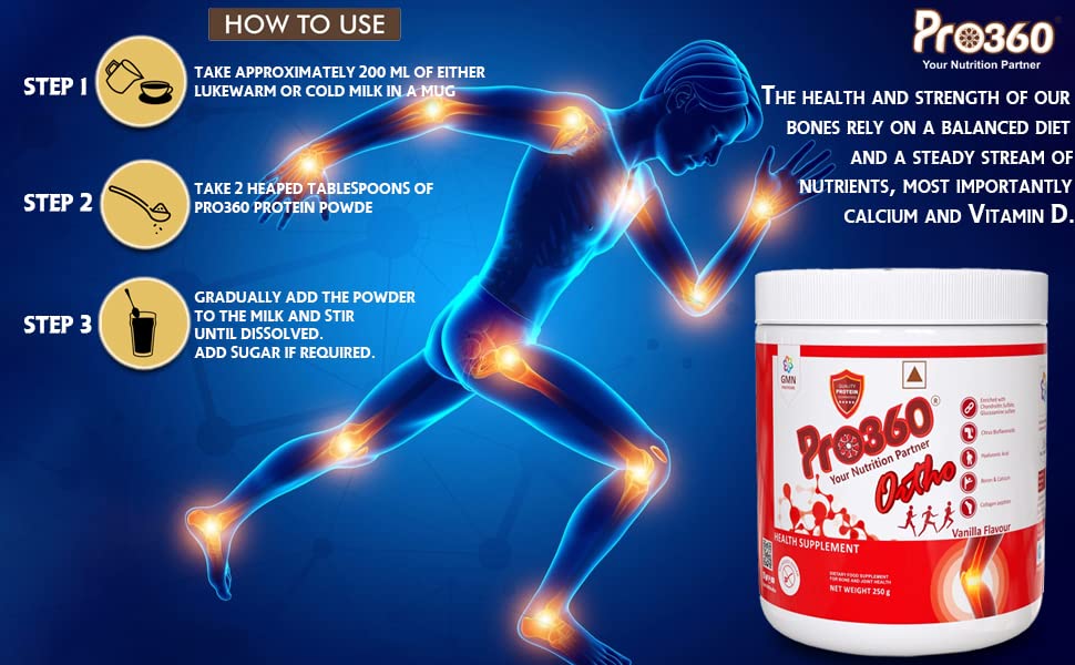 Pro360 Ortho nonveg contains collagen peptides glucosamine sulfate chondroitin sulfate. Pro360 Ortho nonveg is loaded with MSM. Pro360 ortho nonveg is also rich in boswellia serrata. Endowed with dha omega 3 (triple strength). It comes in no added sugar formula.