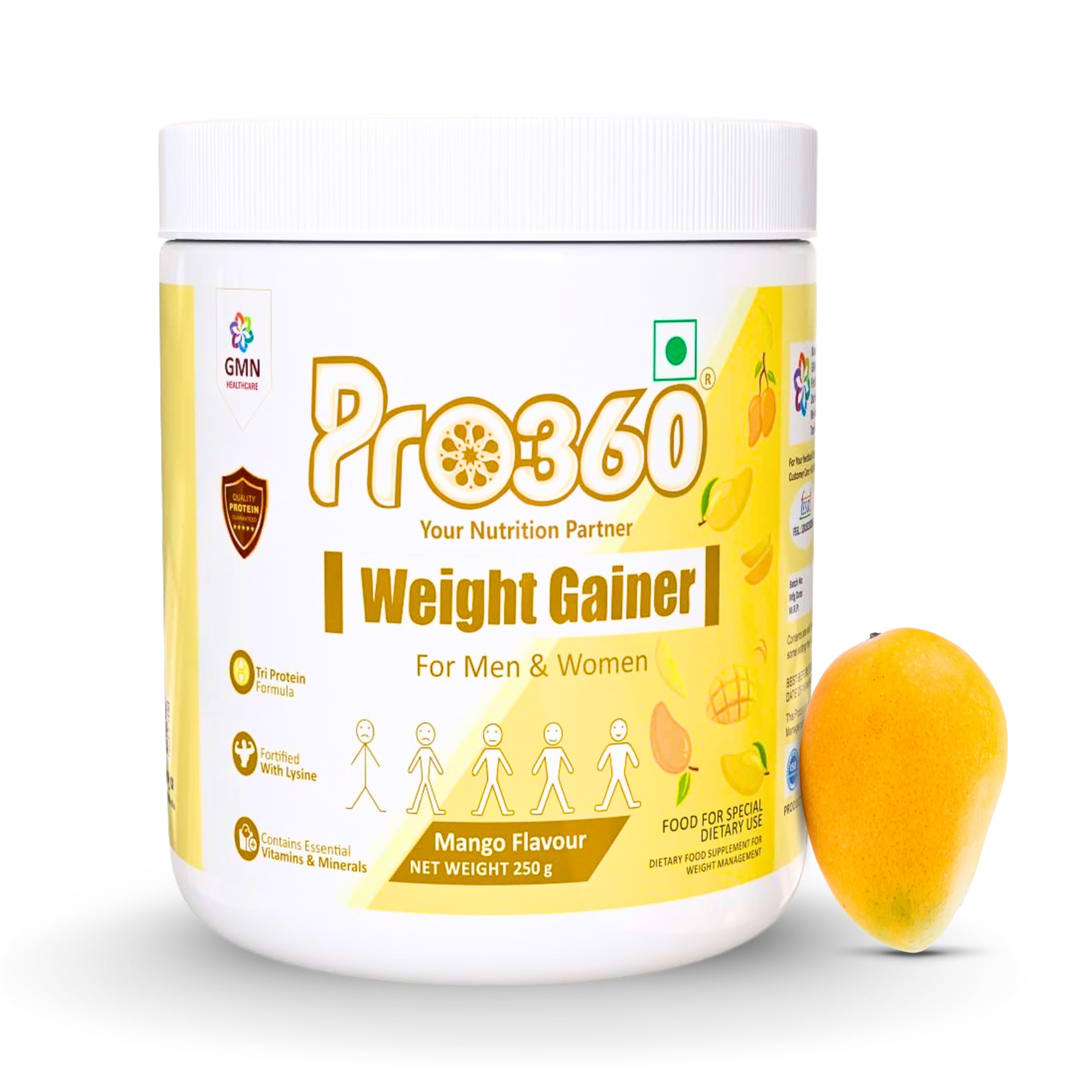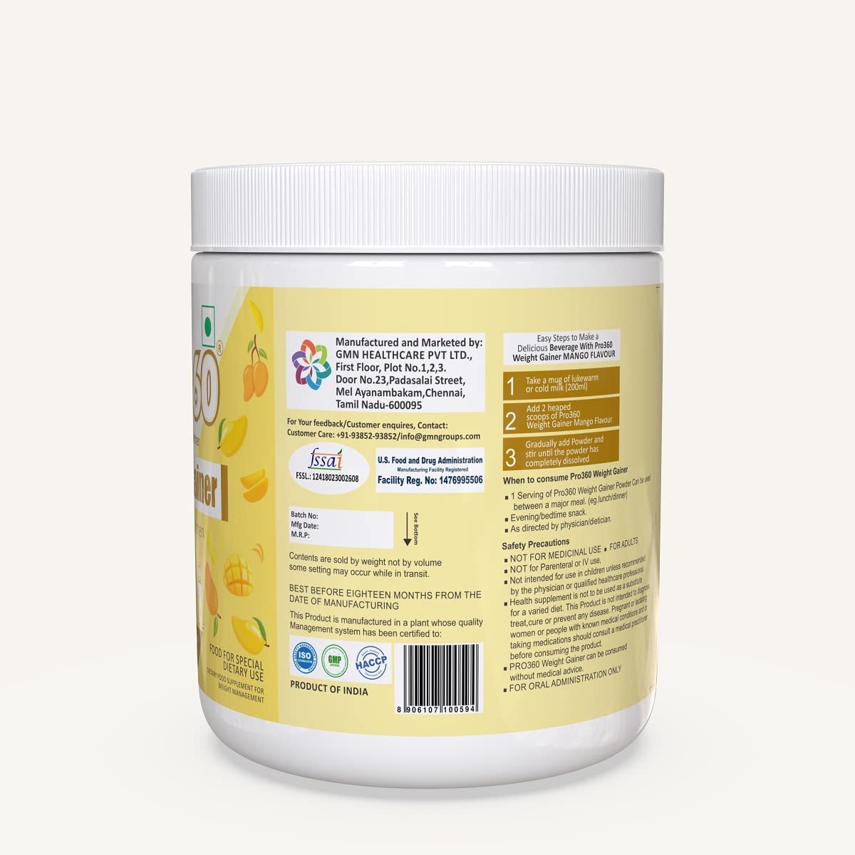 Pro360 Weight Gainer High Protein Powder - Calorie Rich Complete Nutritional Supplement - Triple Protein Source with 25 Vital Nutrients for Men & Women - 250G (Mango)