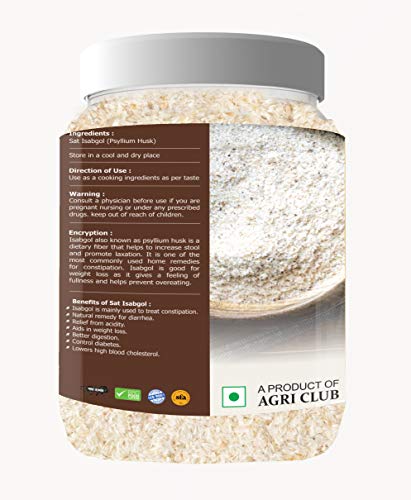 Psyllium Husk | Sat Isabgol (Bhusi) Husk - 250M Fiber Supplement | for Constipation | Agri Club