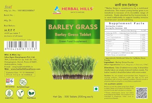 Barley Grass - 500 Tablets Super Saver Pack. Our brand provides you with the products which are made from quality material. Providing quality standard products is our most priority for us. There are various collection of products available to choose from.