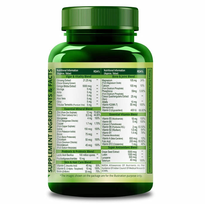 Himalayan Organics Multivitamin With Probiotics, 40 Ingredients Immunity Booster: 180 Vegetarian TabletsAbout This Item:Himalayan Organics Multivitamin for women and men is infused with Organic Calcium, Magnesium, Phosphorus, Potassium & Vitamin D for Superior Bone & Joint Support.The multivitamin complex may help increase energy and stamina levels, enhance nervous and immune systems, improve vision, improve antioxidant capabilitiesDigestive Balance: These multivitamins with probiotics tablets for women contain Probiotic, essential minerals, and vitamins blend that is gentle on the stomach and great for gut health.Our multivitamin is super packed with herbs, vitamins, and minerals that may help support your immunity. Packed with super ingredients such as Ashwagandha, Giloy & a variety of minerals and herbs blend.Skin & Hair care blend: Himalayan Organics Multivitamin for men and women contains Biotin, Vitamin E & Vitamin C are added to support healthy hair & skin.Legal Disclaimer: Statements regarding dietary supplements have not been evaluated by the FDA and are not intended to diagnose, treat, cure, or prevent any disease or health conditionNote: The product is guaranteed to be 100% genuine. Product images are for illustrative purposes only. Images