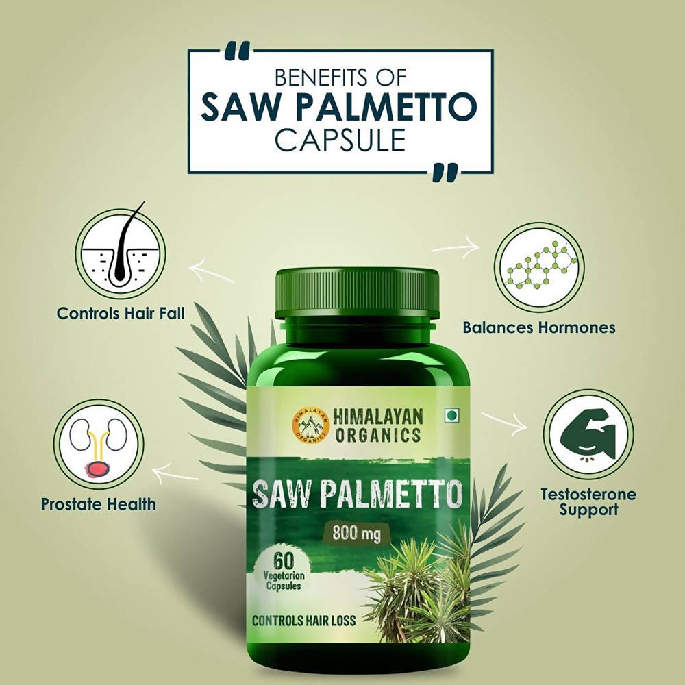 Himalayan Organics Saw Palmetto Controls Hair Loss: 60 Vegetarian CapsulesNourished Hair Health: Himalayan Organics Saw Palmetto may help to maintain healthy levels of DHT in the body, which makes hair follicles strong and nourishes hair. In fact, it even works well with damaged and over-processed hair, promoting natural and nourished hair growth.Blemish-Free Skin: The product is beneficial in dealing with increased acne as Saw Palmetto manages the production of Sebum, an oily secretion that makes skin prone to acne. The product also deals with breakouts, manages acne growth, and promotes glowing, nourished, and gorgeous skin.Relief From Stress: Undoubtedly, Saw Palmetto is known to balance the levels of hormones in our body. The adequate quantity of Saw Palmetto may help manage the level of stress in this competitive and chaotic world.Natural & Gluten Free: Himalayan Organics Saw Palmetto is a natural dietary supplement free from gluten, eggs, fish, milk. Focused on sustainable farming and products, we do not encourage the usage of Artificial Colors, Binders, Synthetic Chemicals, or Preservatives.Special Ingredients: Gluten, NaturalDosage Form: CapsuleBrand: Himalayan OrganicsNet Quantity: 60 countLegal Disclaimer: The product is guaranteed to be 100% genuine. Product images are for illustrative purposes