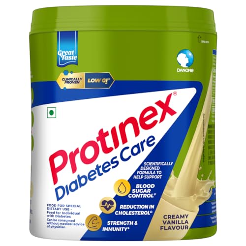 Protinex Diabetes Care is a vegetarian ready-to-serve nutritional formulation for people with Diabetes. It is a scientifically designed nutrition supplement with high protein and high fiber. High protein and high fiber diets have shown to help manage blood sugar levels and induce satiety. Protinex Diabetes Care is clinically proven to have Low GI. It also contains 30 essential nutrients including 11 immuno-nutrients that help support strength. Available in Vanilla Flavor itâs a tasty drink with zero added sugar and low-fat content that makes it suitable for people with diabetes.