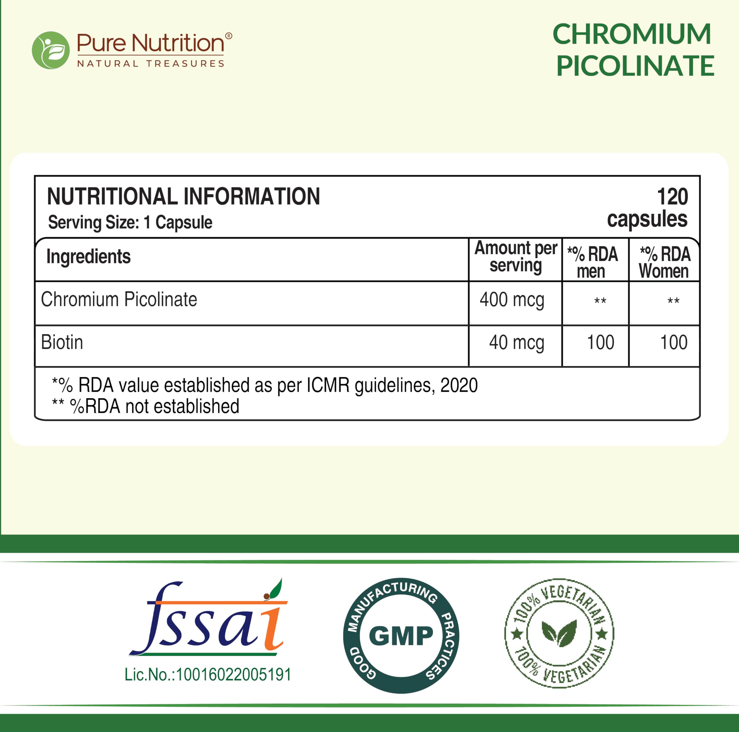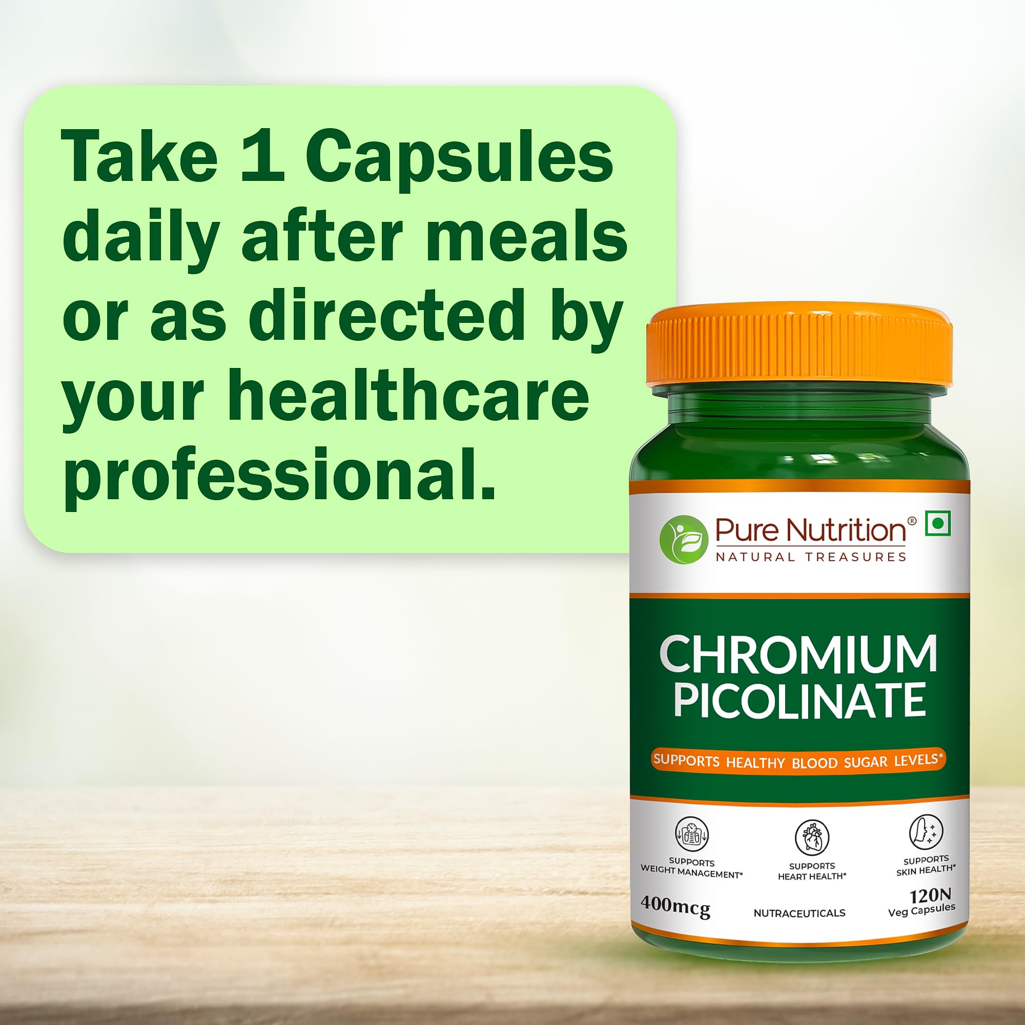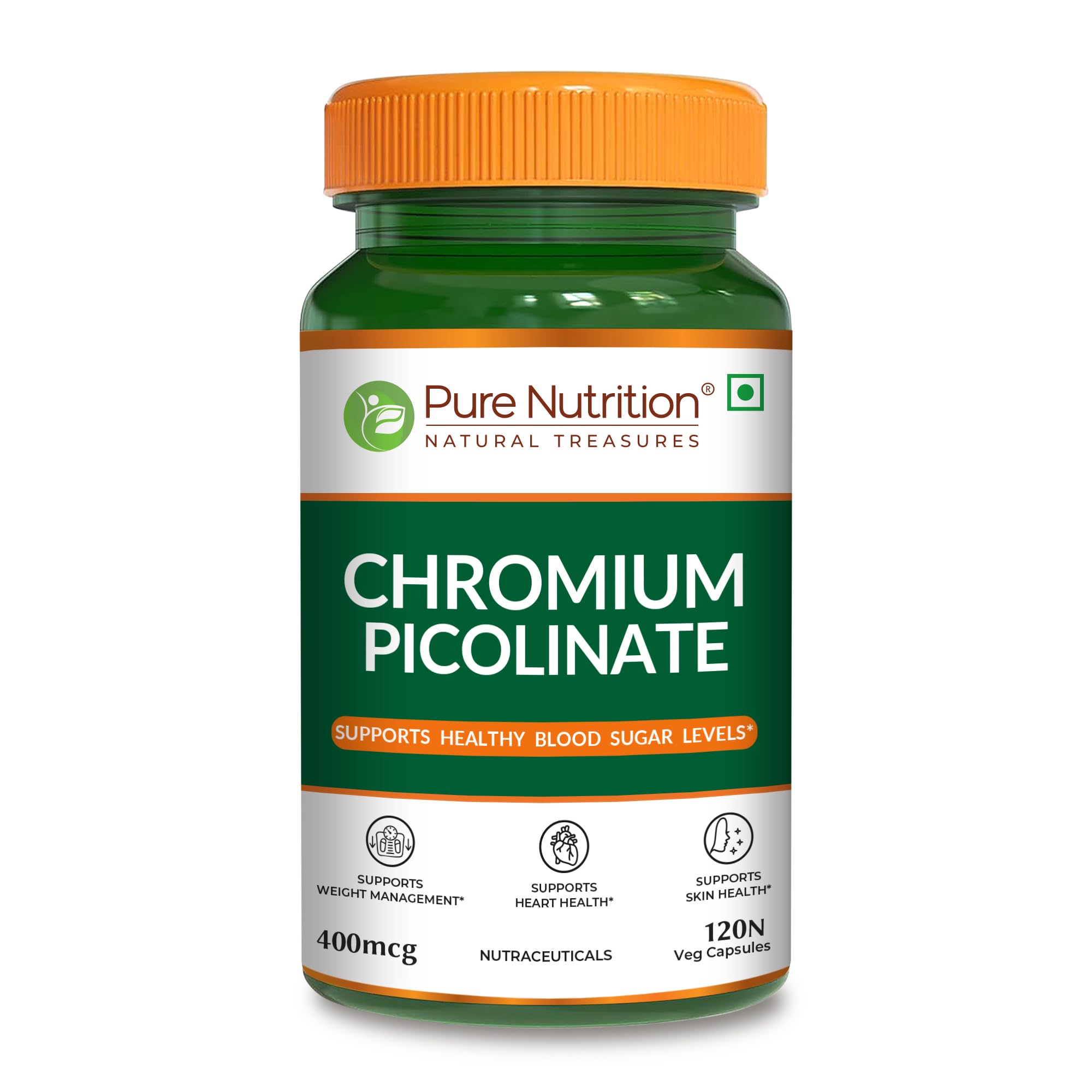 Pure Nutrition Chromium Picolinate is a dietary supplement designed to support healthy blood sugar levels weight management heart health and skin health. Each vegetarian capsule delivers 400mcg of chromium picolinate a bioavailable form of the essential mineral chromium. Chromium plays a crucial role in glucose metabolism and may assist in maintaining normal blood glucose levels.
