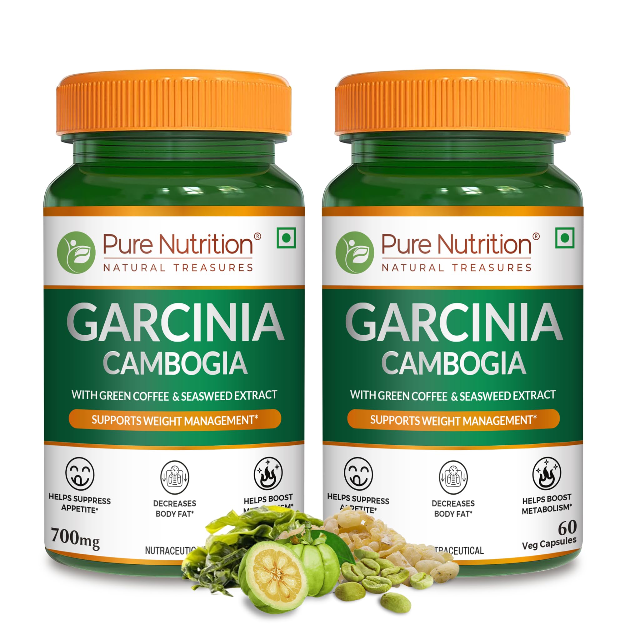 Pure Nutrition Garcinia Cambogia (700mg) 120 Veg Capsules (60 x 2) For Men & Women with Green Coffee & Seaweed Extract For Digestion and metabolism