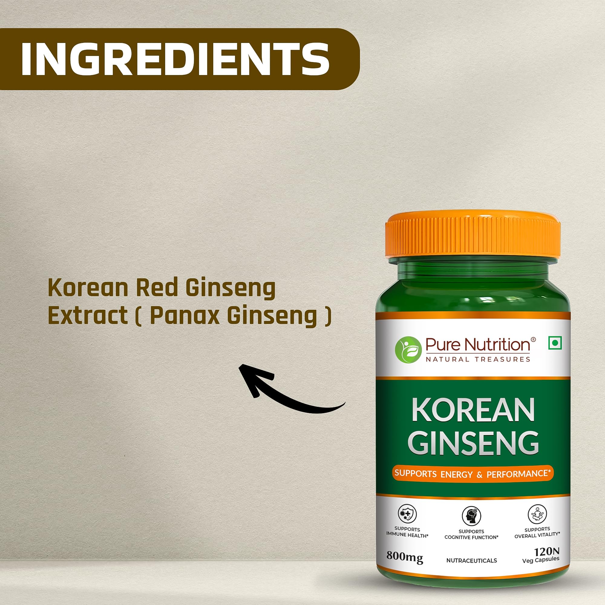 Experience the natural power of Pure Nutrition Korean Ginseng 800mgâformulated to help boost energy focus and overall vitality. Each capsule delivers premium quality ginseng extract to support mental clarity immune health and physical stamina. Ideal for active lifestyles students and busy professionals. Made with vegetarian-friendly ingredients and manufactured in a GMP-certified facility.
