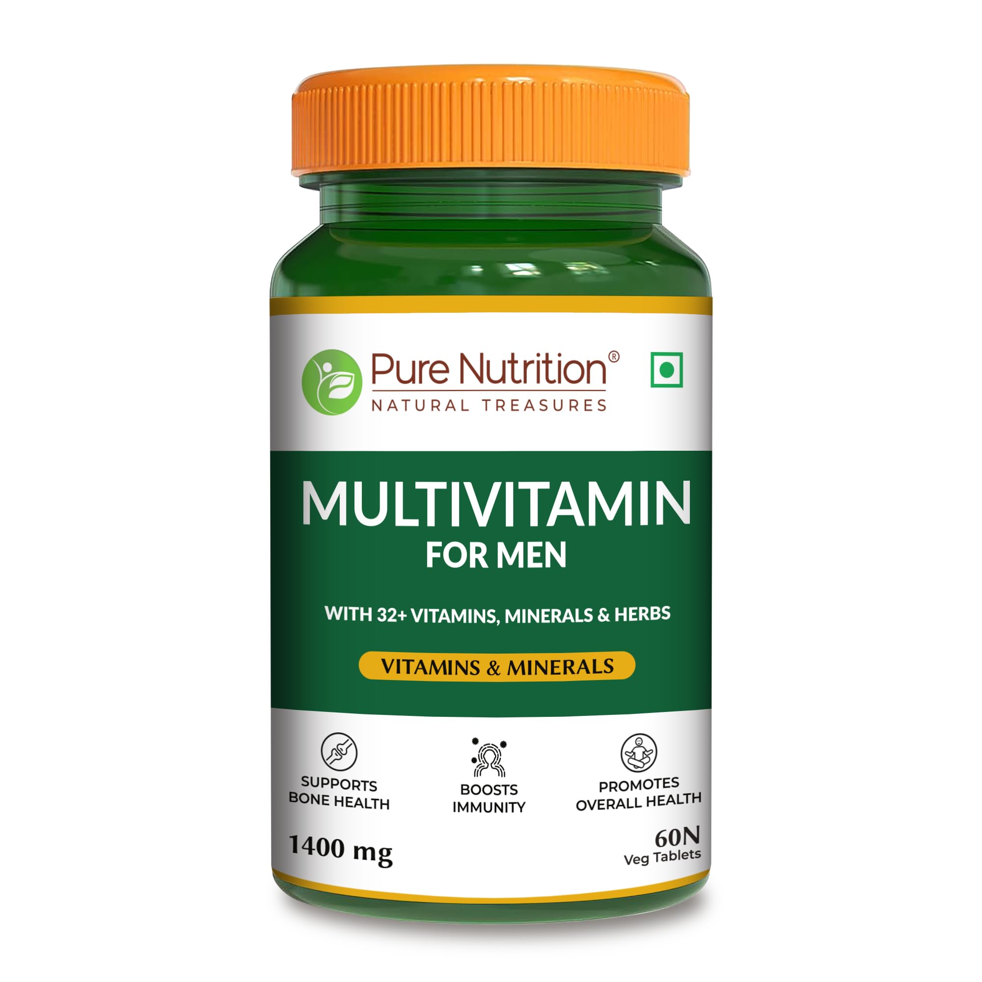HomeHealth & PersonalDiet & NutritionHealth SupplementsPure Nutrition Multivitamin for Men (1400mg) 180 Veg Tablets (60x3) with Biotin Iron Alfa Alfa Moringa Ginseng Fenugreek & Green Tea | Supports Immunity Energy Stamina Bone & Overall Health