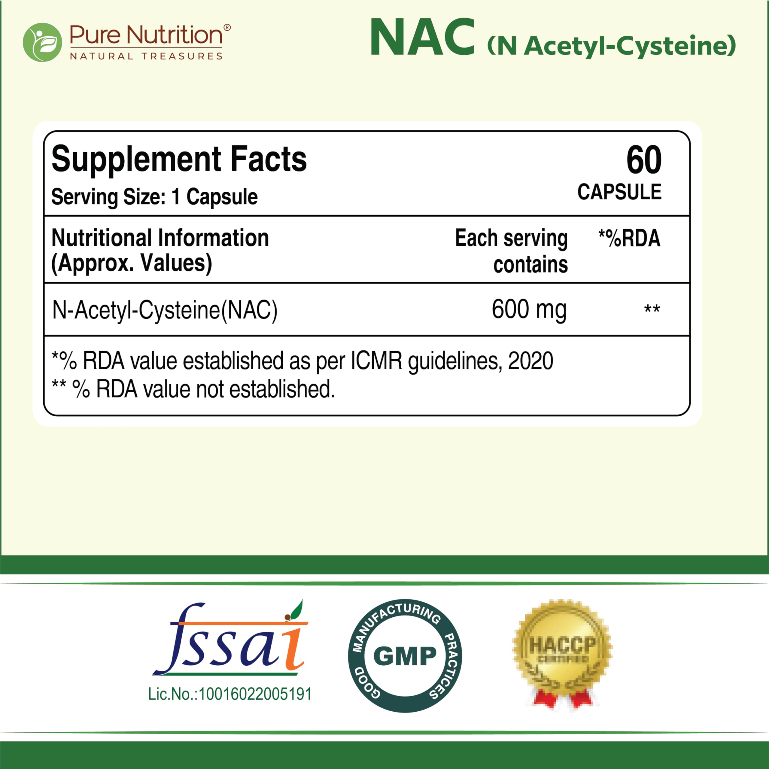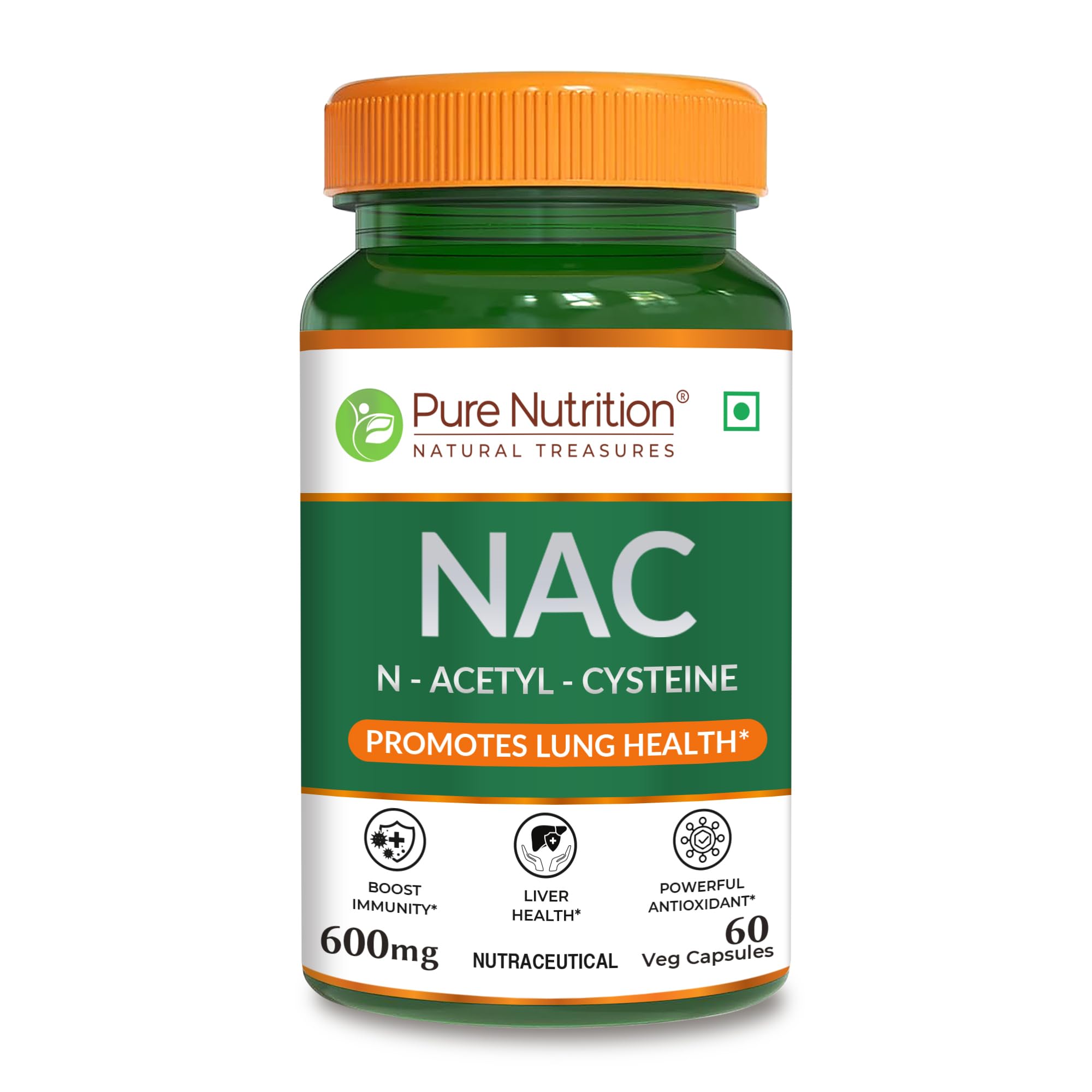 Pure Nutrition NAC (N-Acetyl L-Cysteine) 600mg available in 60 vegetarian capsules supports immunity liver health and respiratory function. It acts as a precursor to glutathione offering powerful antioxidant protection against oxidative stress. Known for thinning mucus it promotes lung health and detoxification.
