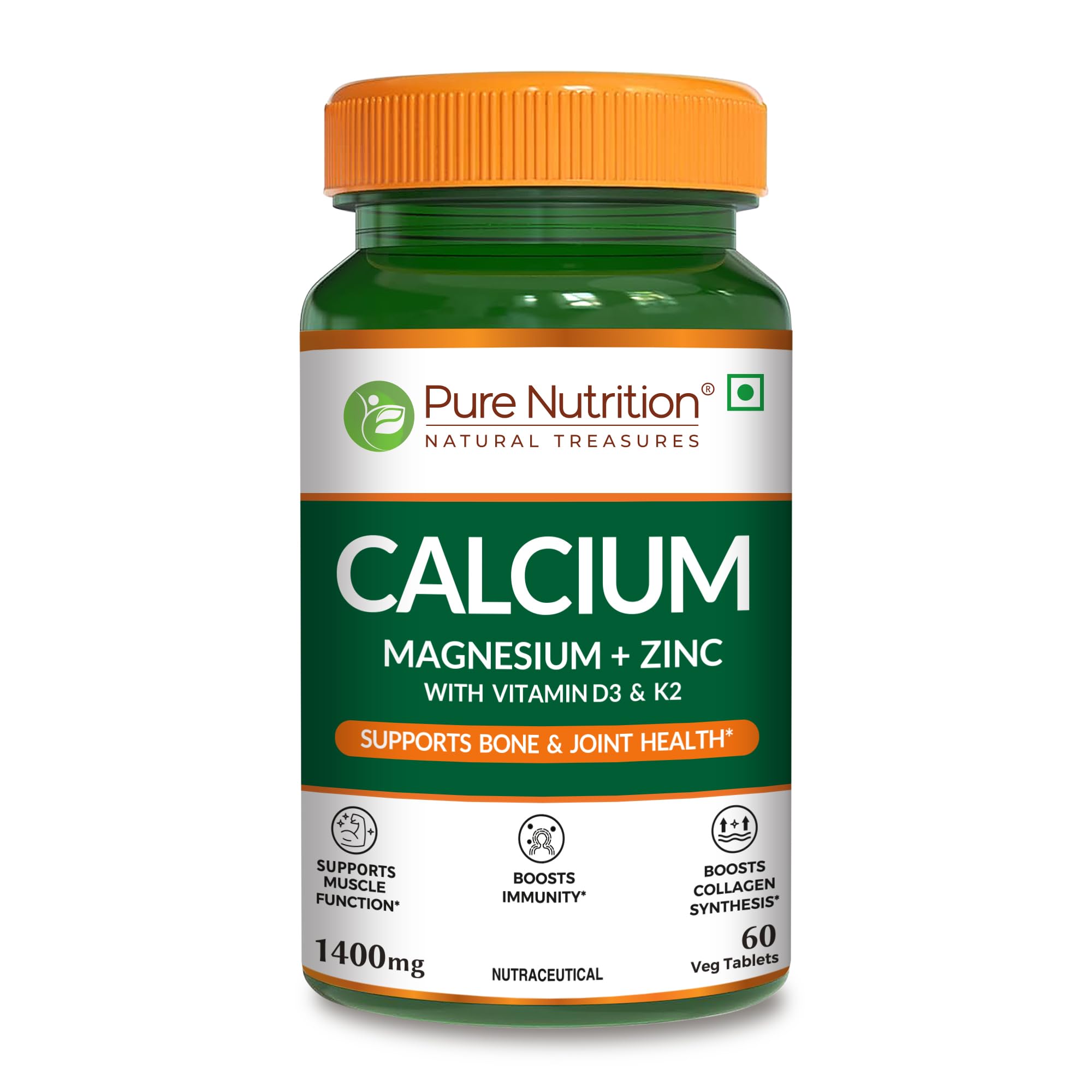 Pure Nutrition Naturals Calcium is scientifically formulated with bone mass-building capabilities and is one of the safest forms of calcium supplements. It consists of calcium citrate malate with ed essential vitamins minerand Naturals al extracts each having unique ways to support bone and muscle health. Vitamin D helps efficient absorption of calcium from the intestine. Meanwhile vitamin K promotes the safe transportation of calcium to bones. Zinc and magnesium support bone formation improve bone density and help collagen synthesis in the bone tissues. Magnesium in the supplement helps and promotes muscle functions. Moringa oleifera helps promote bone density and protects against conditions like bone damage and arthritis. Hadjod extract in the supplement is a rich source of Naturals al calcium that supports bone cell growth regeneration and proliferation. The benefits of calcium for men and women are not just limited to bone health but o muscles and . Calcium helps maintain normal rhythm and muscle contractions along with building bones. These calcium Tabs. help build muscle strength and enhance recovery. Calcium present in this supplement is in the form of Calcium Citrate Malate which is scientifically proven to have a high bioavailability of 71%. These calcium citrate Tabs. are effective and safe to consume as they do not increase the of stones while protecting bone health.