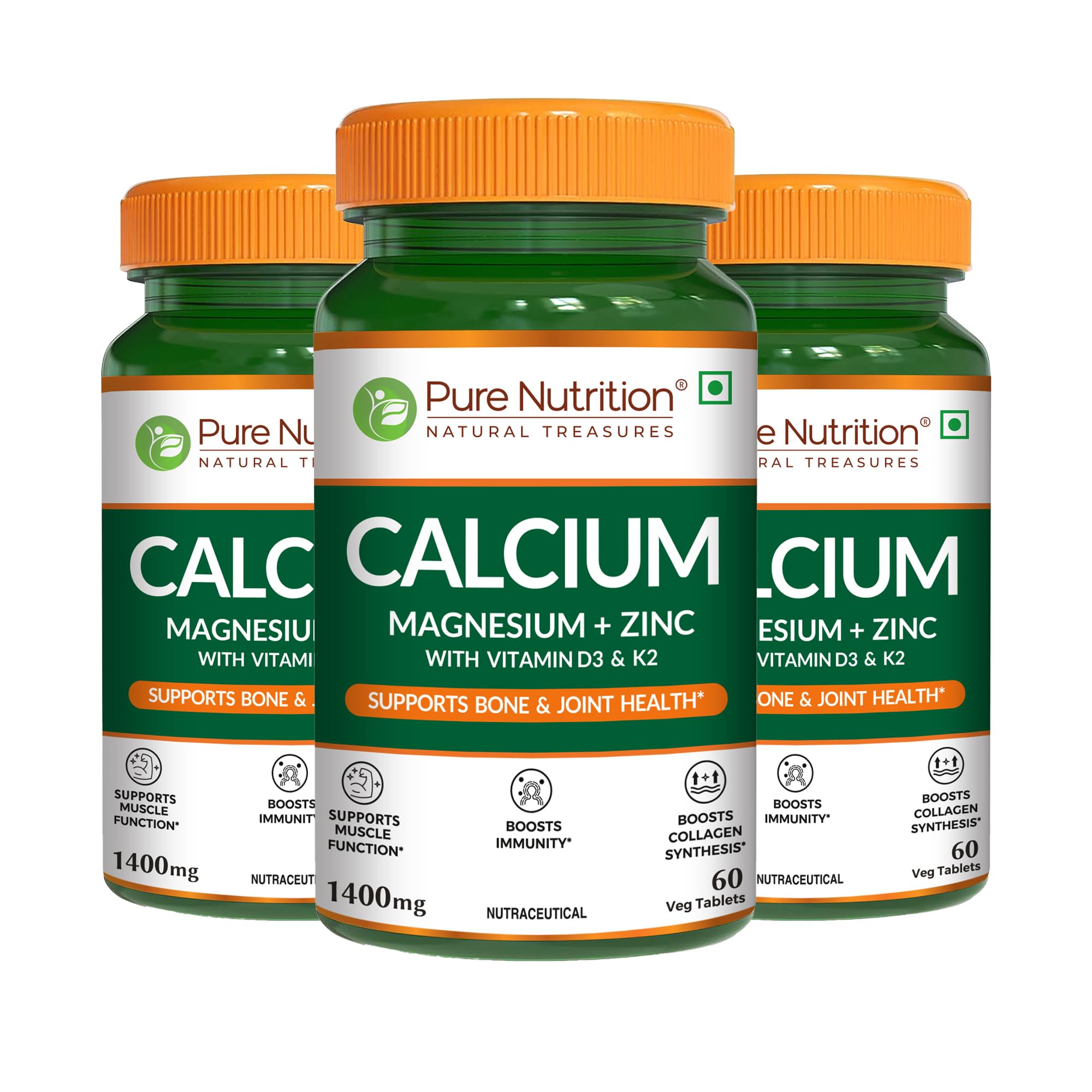Pure Nutrition Calcium is scientifically formulated with bone mass-building capabilities and is one of the safest forms of calcium supplements. It consists of calcium citrate malate with ed essential vitamins minerand Naturals al extracts each having unique ways to support bone and muscle health. Vitamin D helps efficient absorption of calcium from the intestine. Meanwhile vitamin K promotes the safe transportation of calcium to bones. Zinc and magnesium support bone formation improve bone density and help collagen synthesis in the bone tissues. Magnesium in the supplement helps and promotes muscle functions. Moringa oleifera helps promote bone density and protects against conditions like bone damage and arthritis. Hadjod extract in the supplement is a rich source of Naturals al calcium that supports bone cell growth regeneration and proliferation. The benefits of calcium for men and women are not just limited to bone health but o muscles and . Calcium helps maintain normal rhythm and muscle contractions along with building bones. These calcium Tabs. help build muscle strength and enhance recovery. Calcium present in this supplement is in the form of Calcium Citrate Malate which is scientifically proven to have a high bioavailability of 71%. These calcium citrate Tabs. are effective and safe to consume as they do not increase the of stones while protecting bone health.