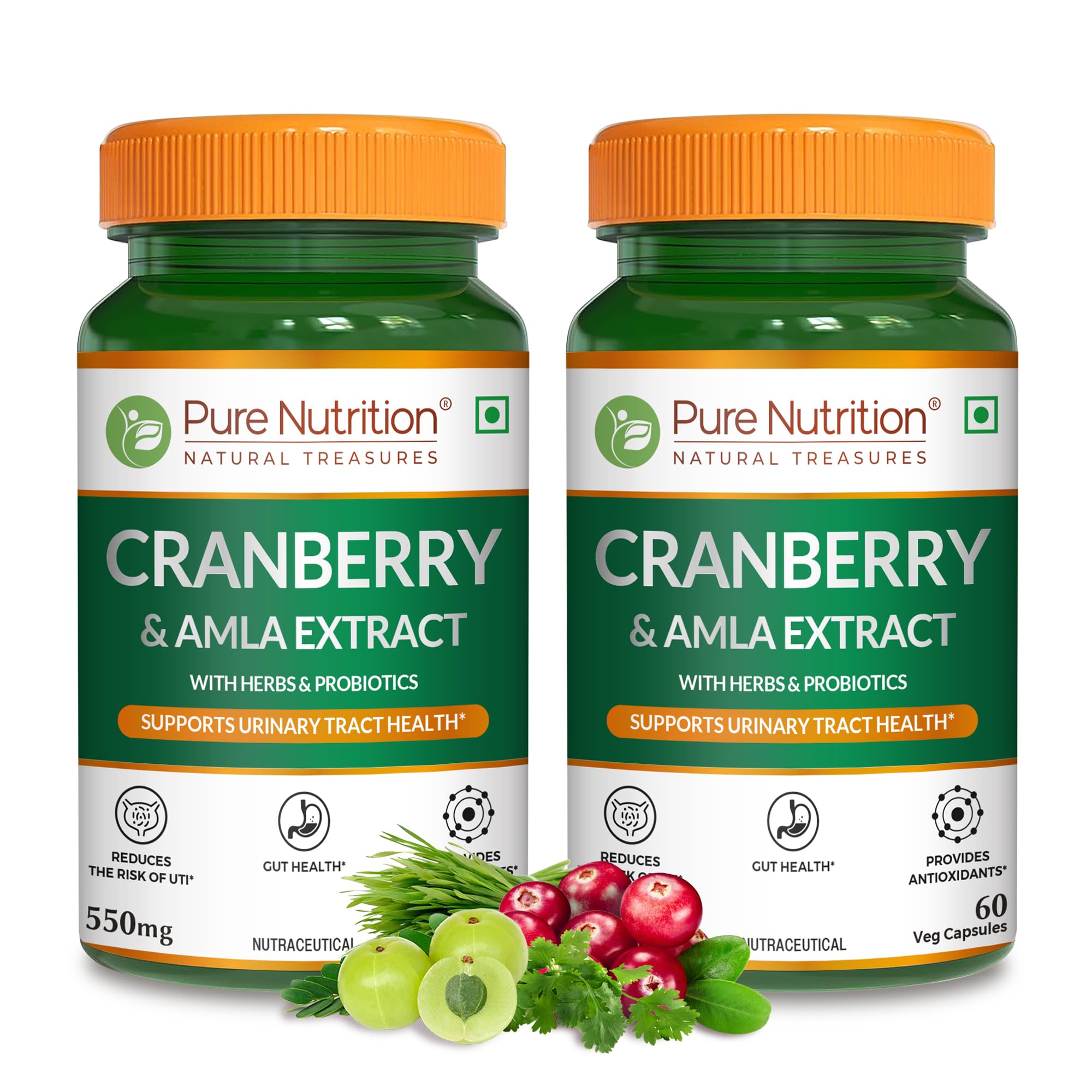 Pure Nutrition Naturals Cranberry supplement is formulated using pure cranberry extracts and other nutrients & herbs to support smooth urological functioning. Cranberry extract contains compounds called proanthocyanidins which prevent bacteria from attaching to the lining of your urethra and bler. If bacteria cannot stick to the tissues they will not multiply and cause an infection. Thus Cranberry for UTI is an ancient remedy. Pure Nutrition Cranberry Caps. consist of extracts of cranberry amla coriander and vetiver along with probiotics which offer antioxidant benefits support urological & health and . Pure Nutrition Cranberry is a potent Cranberry supplement for women and men to fight urinary tract health and overall health.