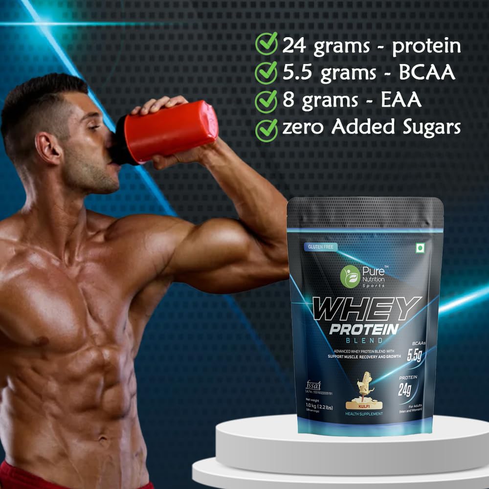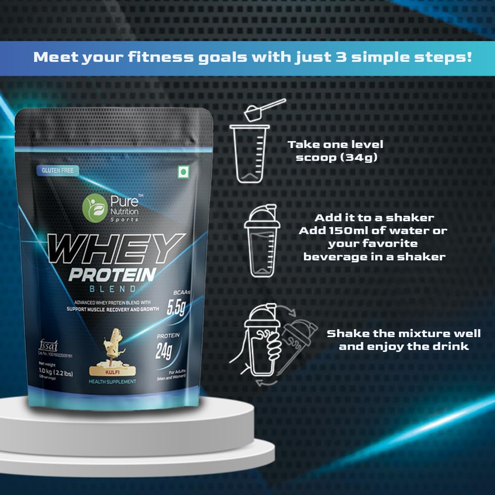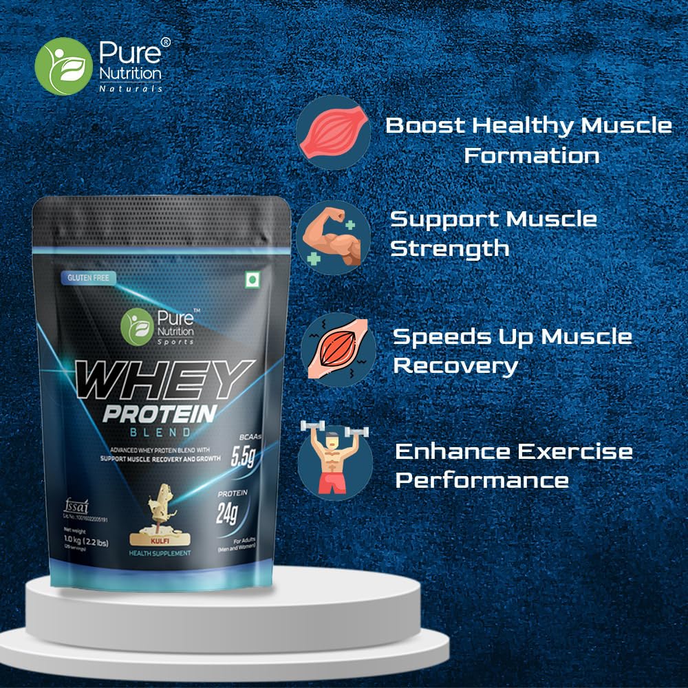 Pure Nutrition Sports Whey Protein Blend is made from Naturals al ingredients and contains a blend of both Whey Protein Isolate and Whey Protein Concentrate. The protein powder supports your body's needs for more energy stamina lean muscle mass gain and quick recovery all in exquisite flavors. This protein powder is devoid of contaminants and artificial substances. In addition it contains 5.5 g BCAA which helps avoid muscle wastage and 24 grams of protein per scoop.