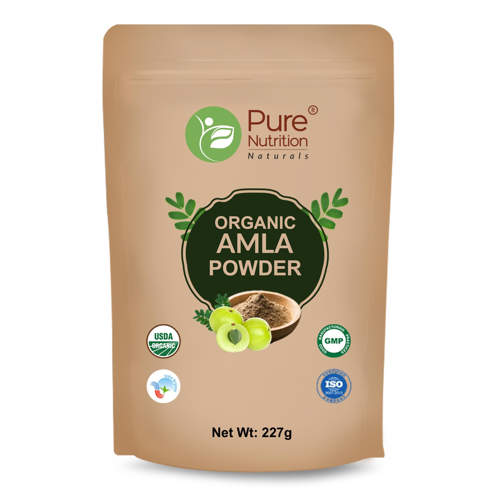 Pure Nutrition Amla powder derived from the Indian gooseberry is a nutritional powerhouse revered for its multifaceted benefits. Bursting with antioxidants it fortifies the body's defense against oxidative stress promoting overall health and vitality. Its digestive properties aid in digestion alleviate constipation and optimize nutrient absorption. A rich source of vitamin C amla powder strengthens the immune system while also benefiting heart health by reducing cholesterol levels and supporting circulation. Its application extends to hair care where it nourishes the scalp stimulates hair growth and prevents premature graying. Additionally its skincare benefits include acne reduction lightening of dark spots and imparting a youthful radiance. With potential to balance blood sugar levels and support brain function amla powder emerges as a versatile ally in holistic wellness enriching both body and mind