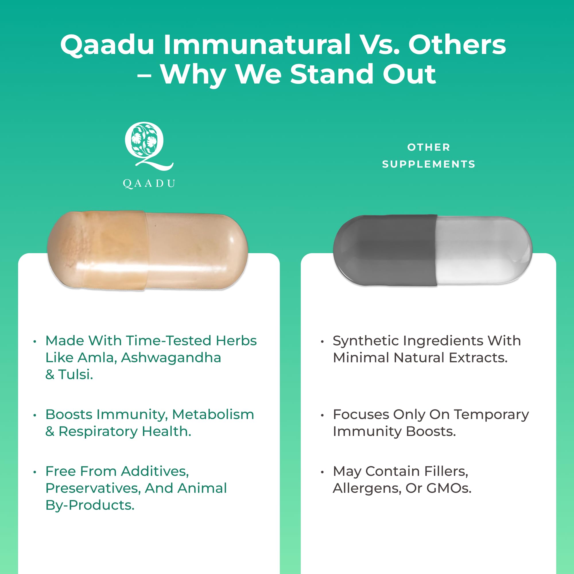 Qaadu ImmuNatural Immunity Booster for Adults 60 capsules | Natural Vegan Ayurvedic Immunity Boosters | Ashwagandha Tulsi Amla Haldi Mulethi Giloy | Immunity Support Suitable for 13 Years+ 500mg