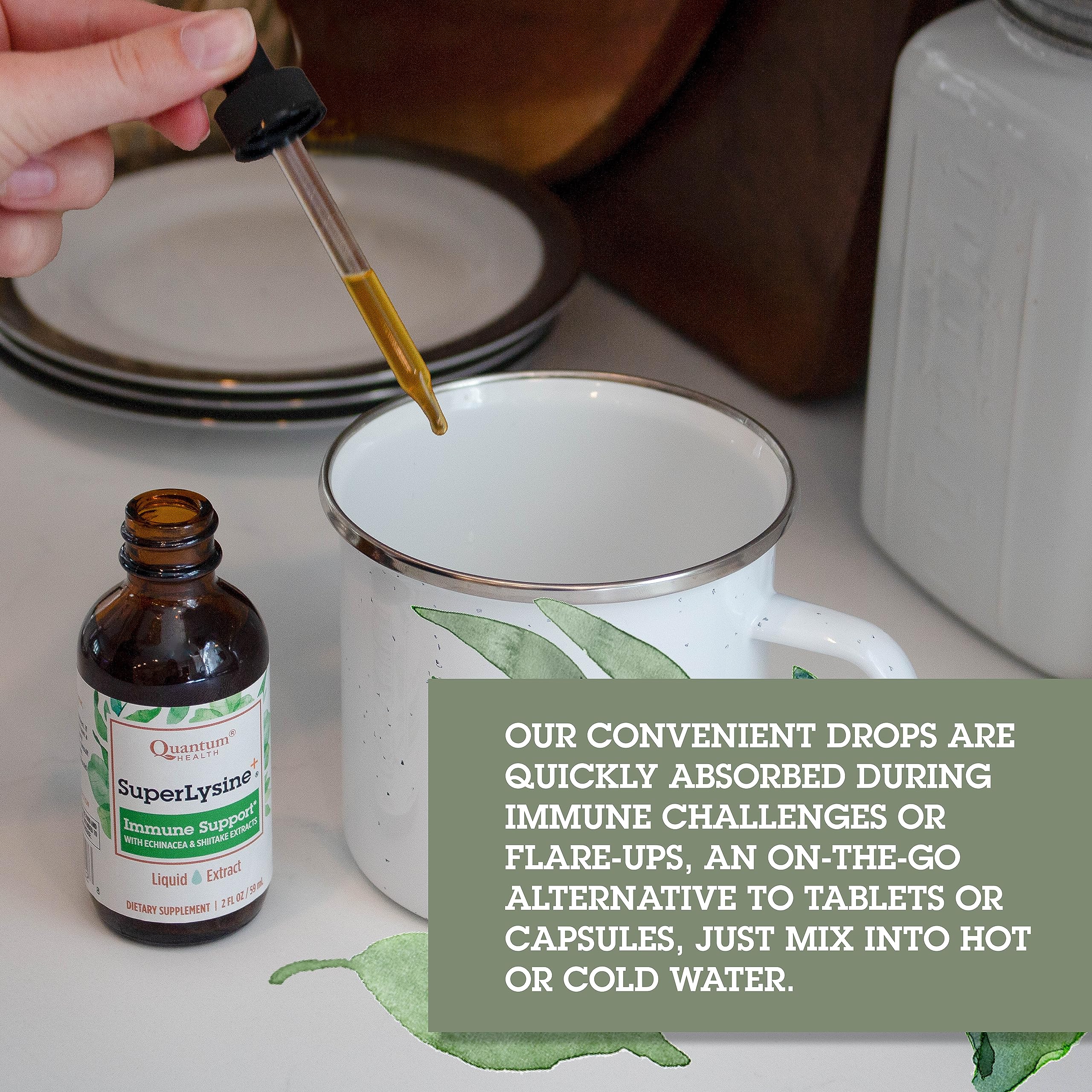 EASY TO USE DROPS Our convenient drops are quickly absorbed during immune challenges or flare- ups an on-the-go alternative to tablets or capsules just mix into hot or cold water.