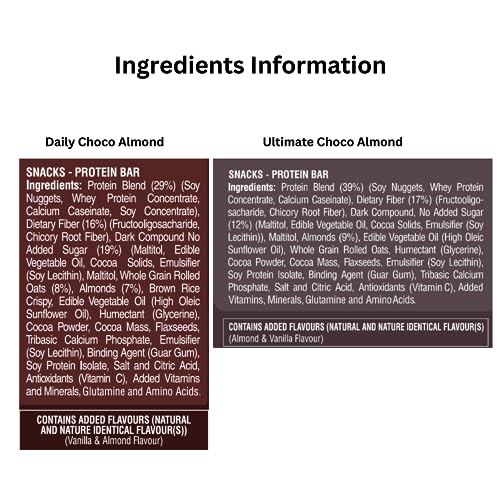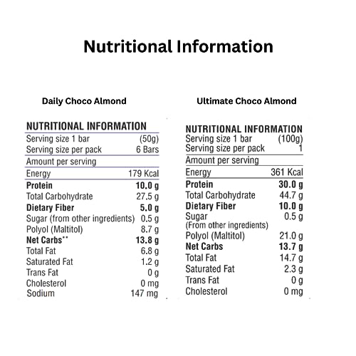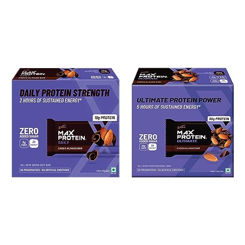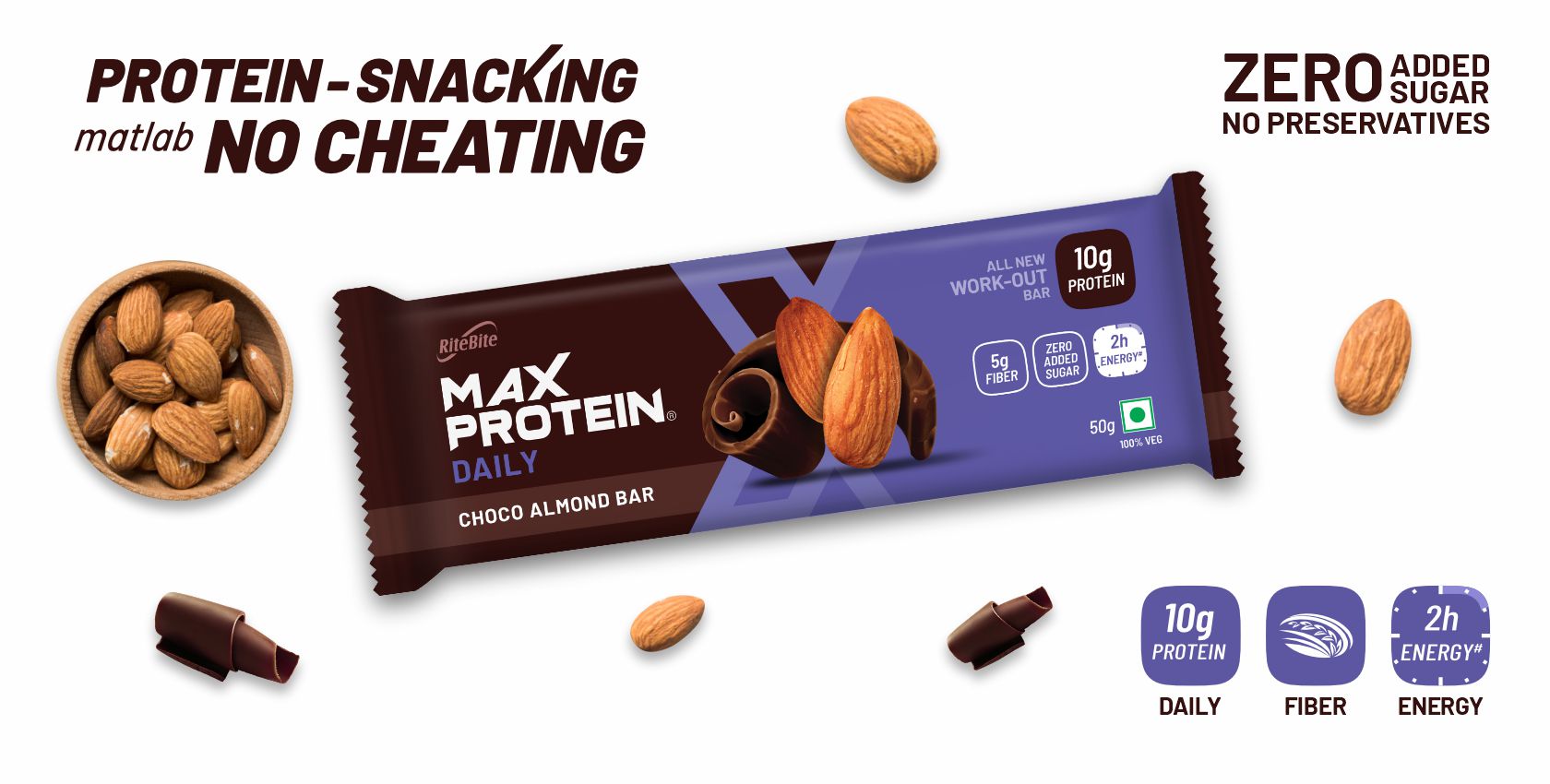 RiteBite Max Protein Daily Choco Almond (Pack of 6)RiteBite Workout Choco Almond bar gives you an unparalleled energy boost for your everyday busy life so you never stop. This delightfully tasty and nutty protein bar can take care of nutritional requirements and help you fight everyday weakness. And if you work out or do yoga this bar is the best workout bar you can get.RiteBite Max Protein Ultimate Choco Almond Bars (600g - Pack of 6 (Standard))Replenish your daily protein necessity with this protein-rich bar and stay ahead everyday with more intensity. Especially crafted for workout freaks it is made with the healthy blend of whey and soy protein with a nutty taste of almonds to energize your body and take care of the constant wear and tear it goes through. It is 100% vegetarian and completely sugar-free.