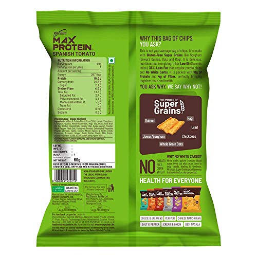 Now binge without stopping with Max Protein Spanish Tomato chips. The perfect snack for those late night movie marathons or mid meal munching. Savour the taste of tangy Spanish tomatoes in this delicious snack made with select ingredients and spices. The goodness of 7 Millets & Pulses in this undisputed delicious snack will leave you craving for more.