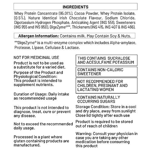 Made In India: Max Protein takes pride in its Indian heritage. Our Irish Chocolate variant is crafted with precision and care in India bringing you international quality with a touch of local excellence.