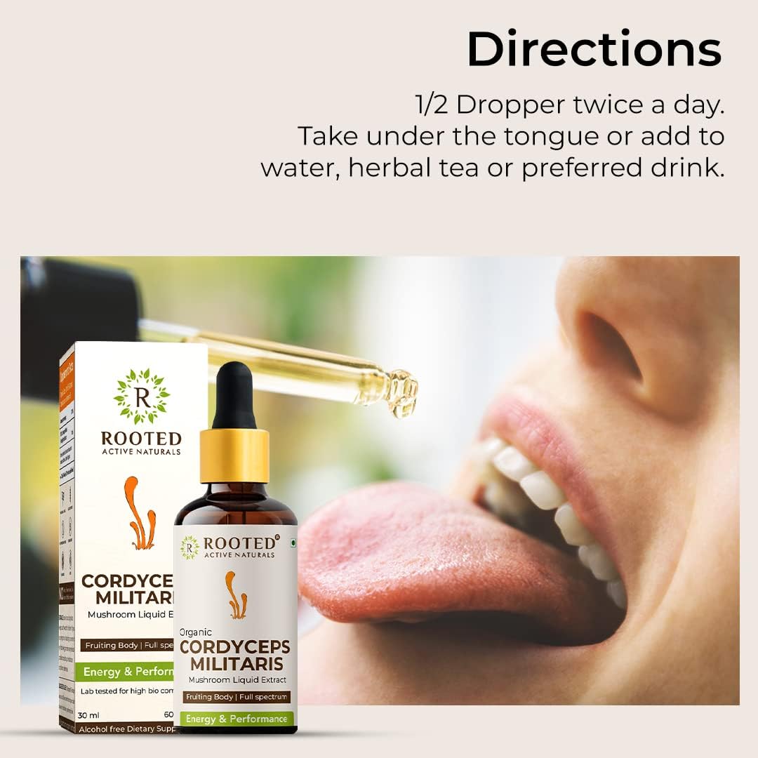 Unlock the power of medicinal mushrooms with Rooted Active Cordyceps and Lion Mane Mushroom Tinctures. This dual-extract bundle is designed to enhance cognitive function boost energy and support overall well-being. Rooted Active Cordyceps Mushroom Tincture (30ml) A full-spectrum alcohol-free liquid extract of Cordyceps Militaris known for its ability to enhance stamina endurance and respiratory function. Rooted Active Lion Mane Mushroom Tincture (30ml) A potent fruiting body extract of organic Lion Mane mushrooms formulated to support memory focus and nerve health.
