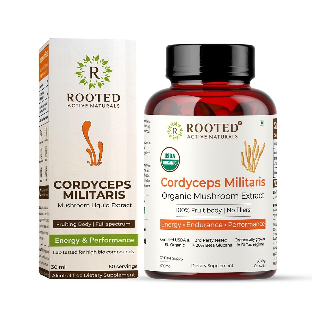 Discover the Cordyceps Power Duo a capsule and tincture combo designed for those seeking to support an active lifestyle. This thoughtfully crafted blend features 100% fruiting body Cordyceps extract known for its natural bioactive compounds. The dual-formula provides the convenience of capsules with the fast absorption of a tincture making it easy to incorporate into your daily wellness routine.