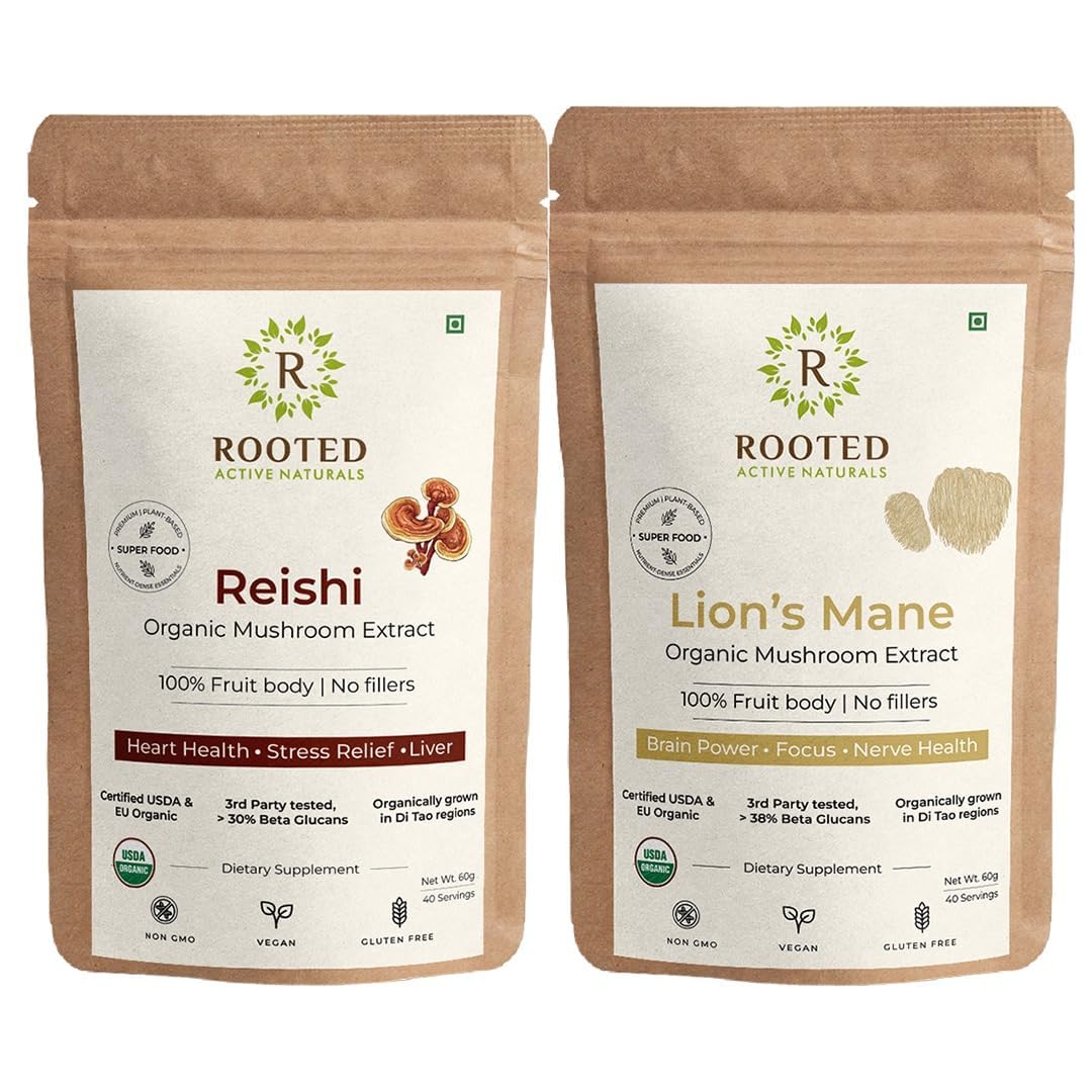 Experience the combined power of Lion Mane Mushroom Powder and Reishi Mushroom Powder two of nature most revered functional mushrooms. Lion Mane is known for supporting cognitive function mental clarity and focus while Reishi is valued for its adaptogenic properties promoting relaxation and immune balance. This premium mushroom blend is perfect for those seeking brain-boosting benefits and overall well-being in an easy-to-use powder form.