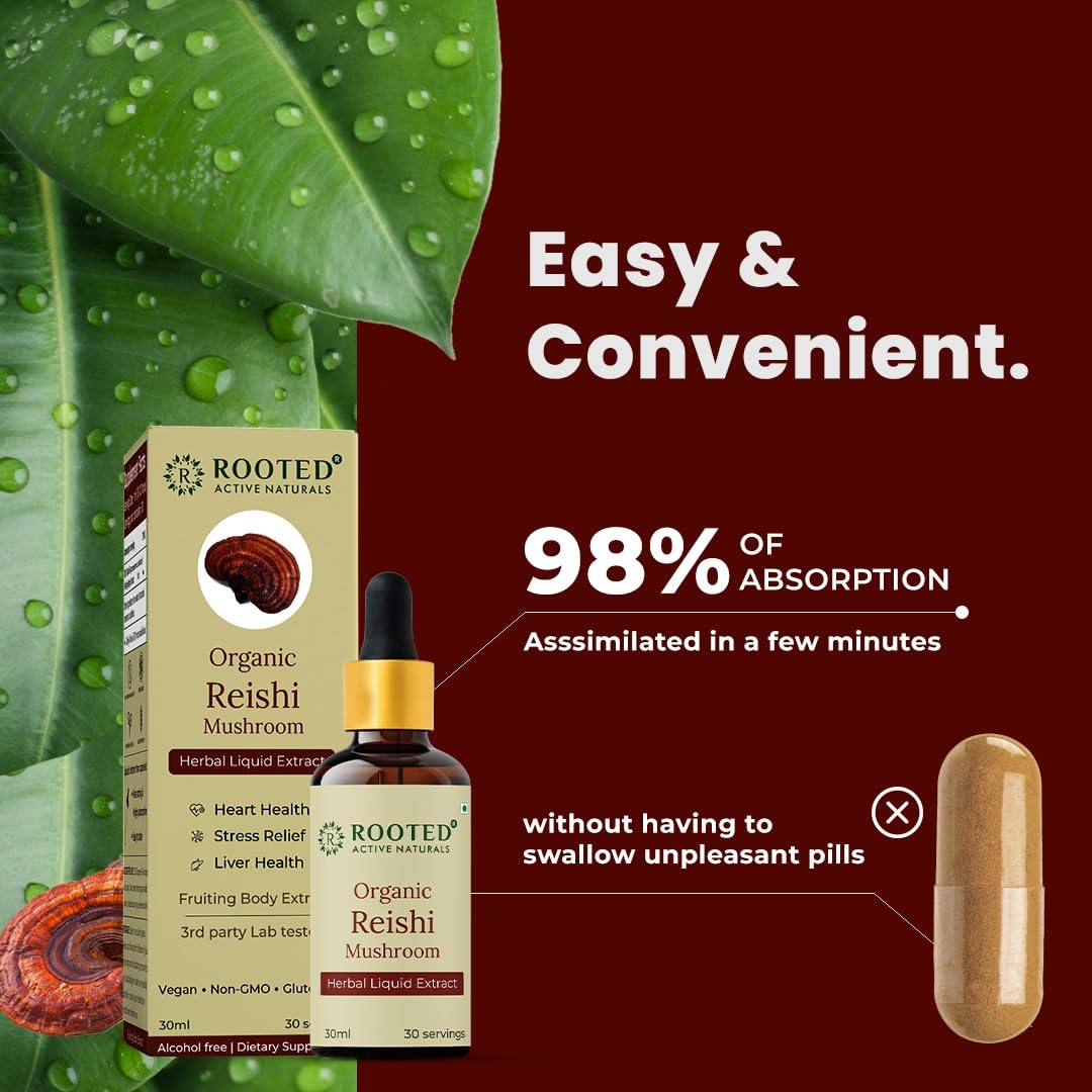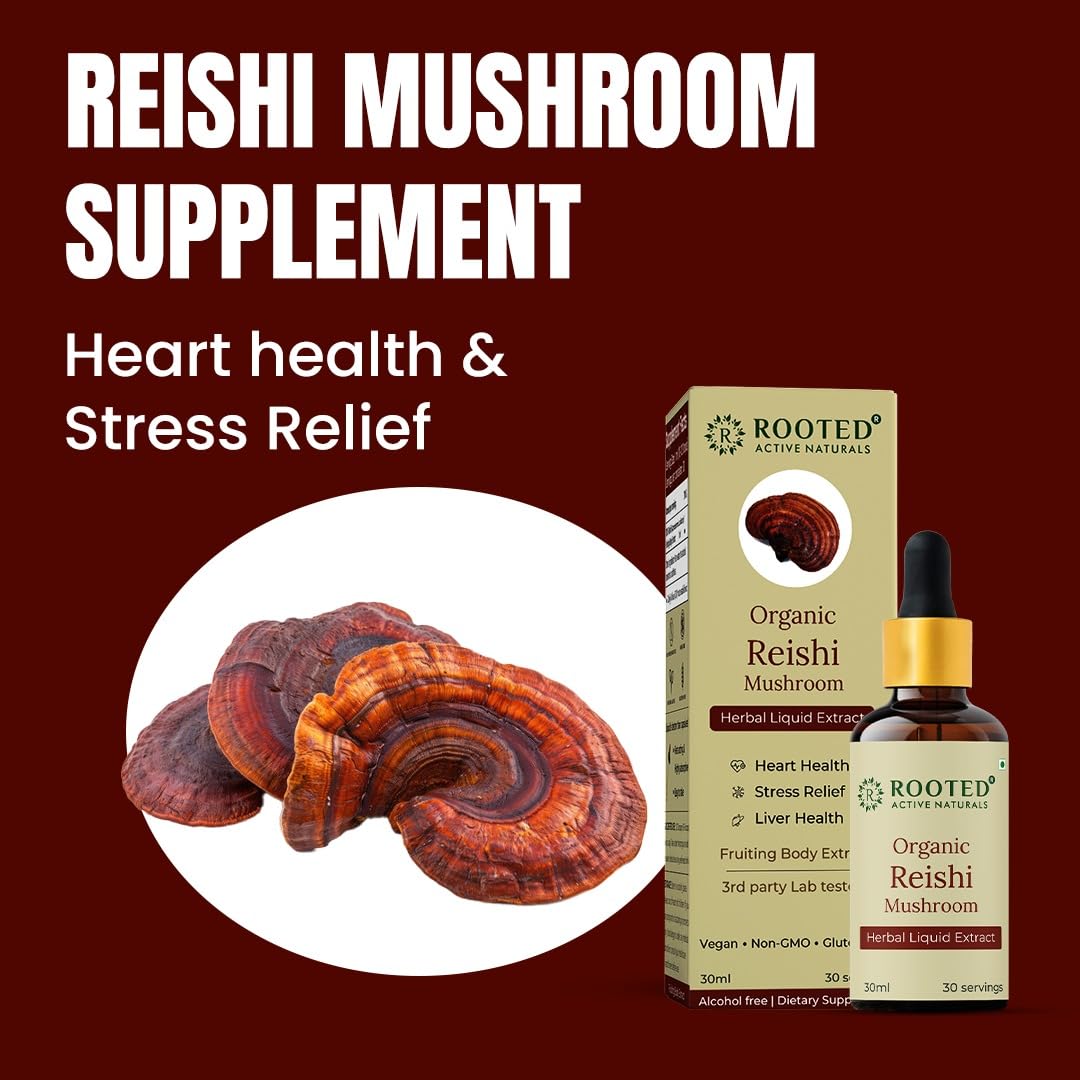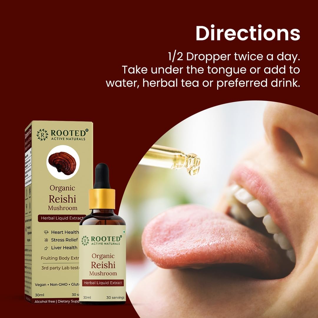 Rooted Actives Organic Reishi Mushroom Liquid Extract (30 ML 30 Servings)