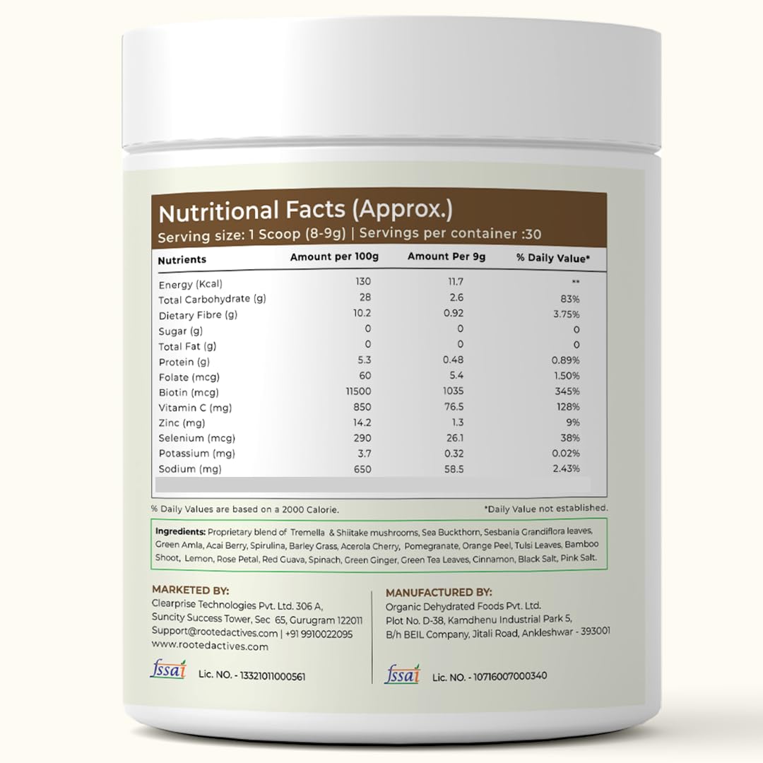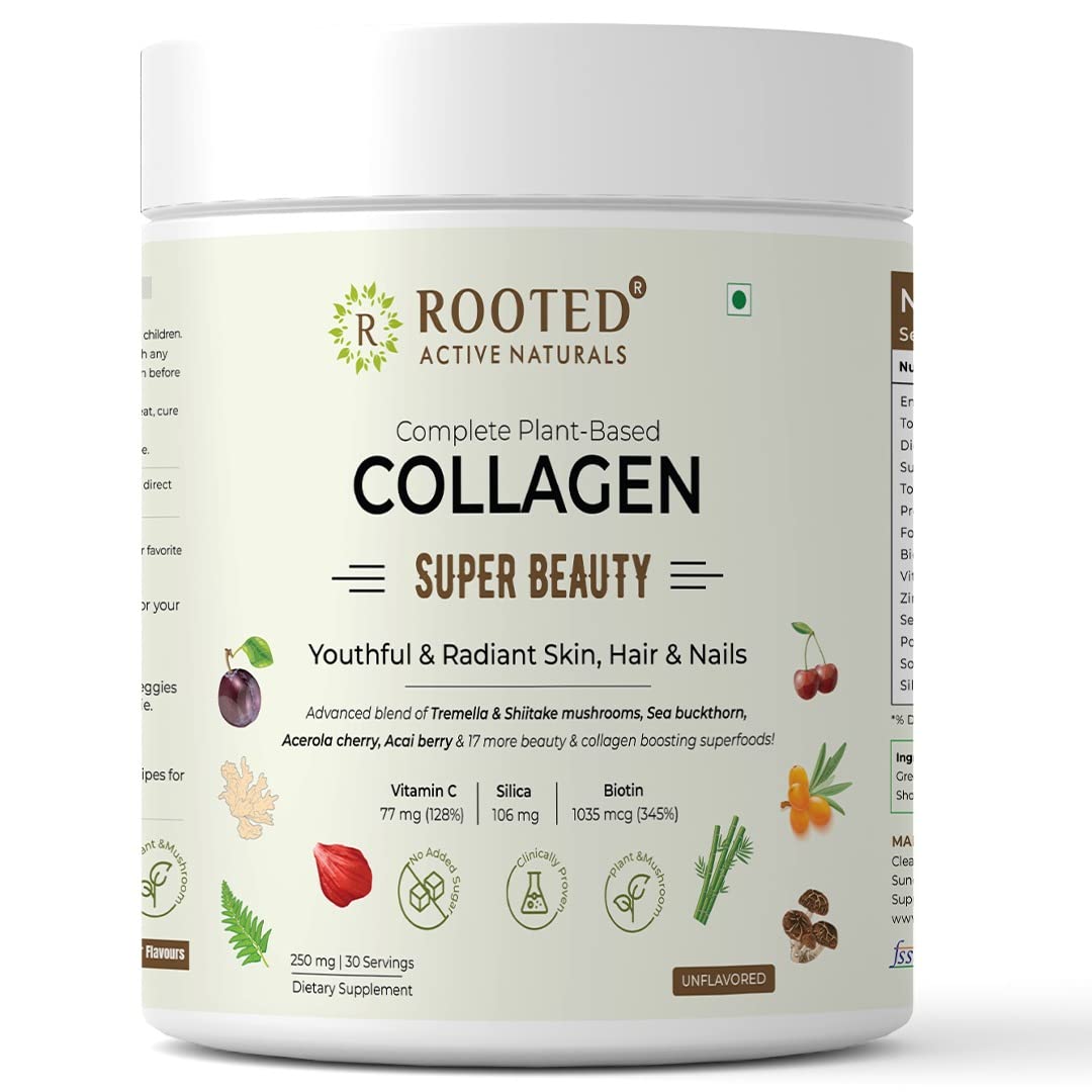 HomeHealth & PersonalDiet & NutritionHealth SupplementsRooted Actives Plant Based Collagen Supplement 250 G | Tremella Mushrooms Biotin Silica Vit C & 17 Beauty Boosters | No Sugar | Collagen Booster | Collagen Supplements For Women & Men