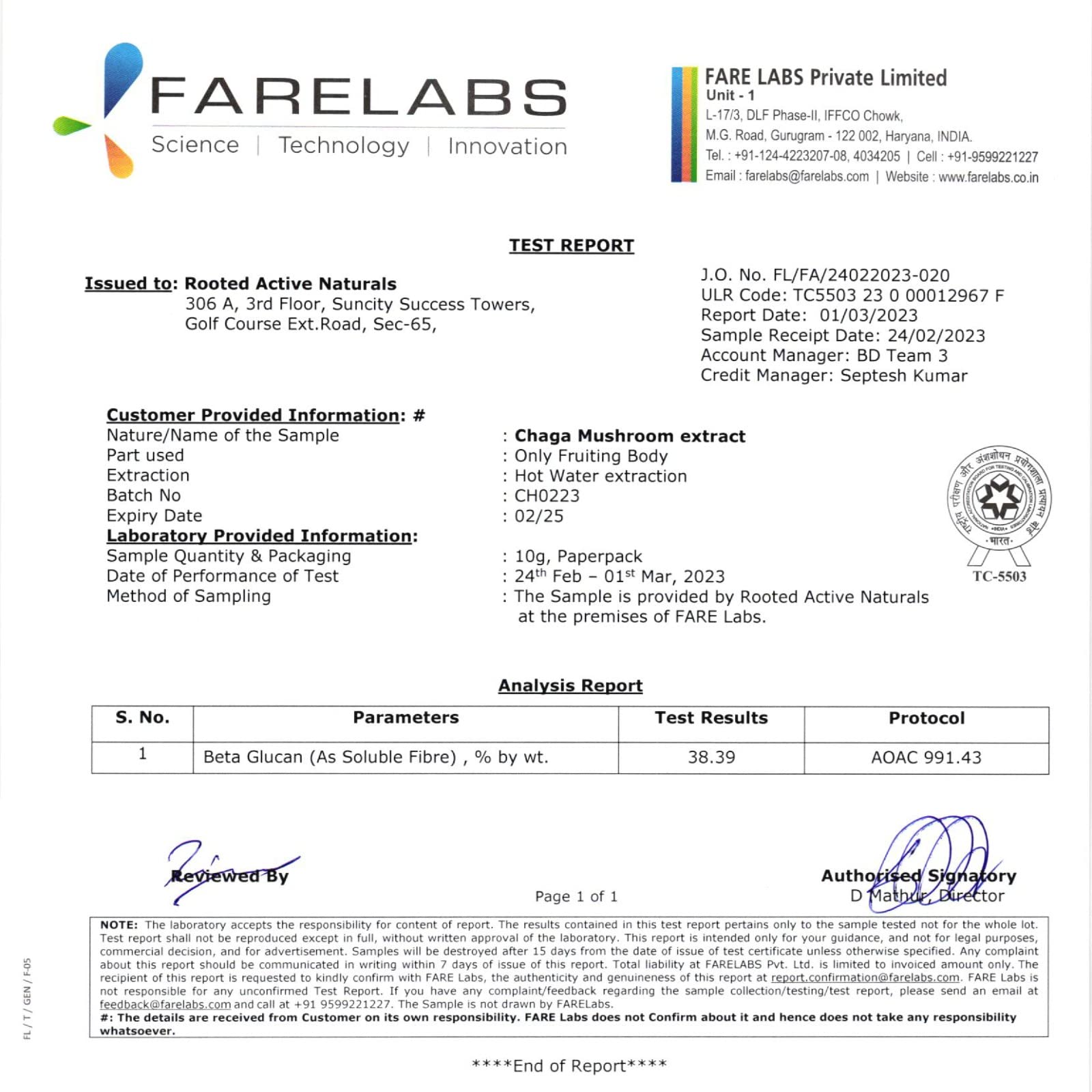 Pure extracts: Concentrated extract powder from Pure fruiting bodies of Chaga mushroom (Inonotus obliquus). No mycelium or fillers used thus high in alpha beta glucans and quality of polysaccharides.