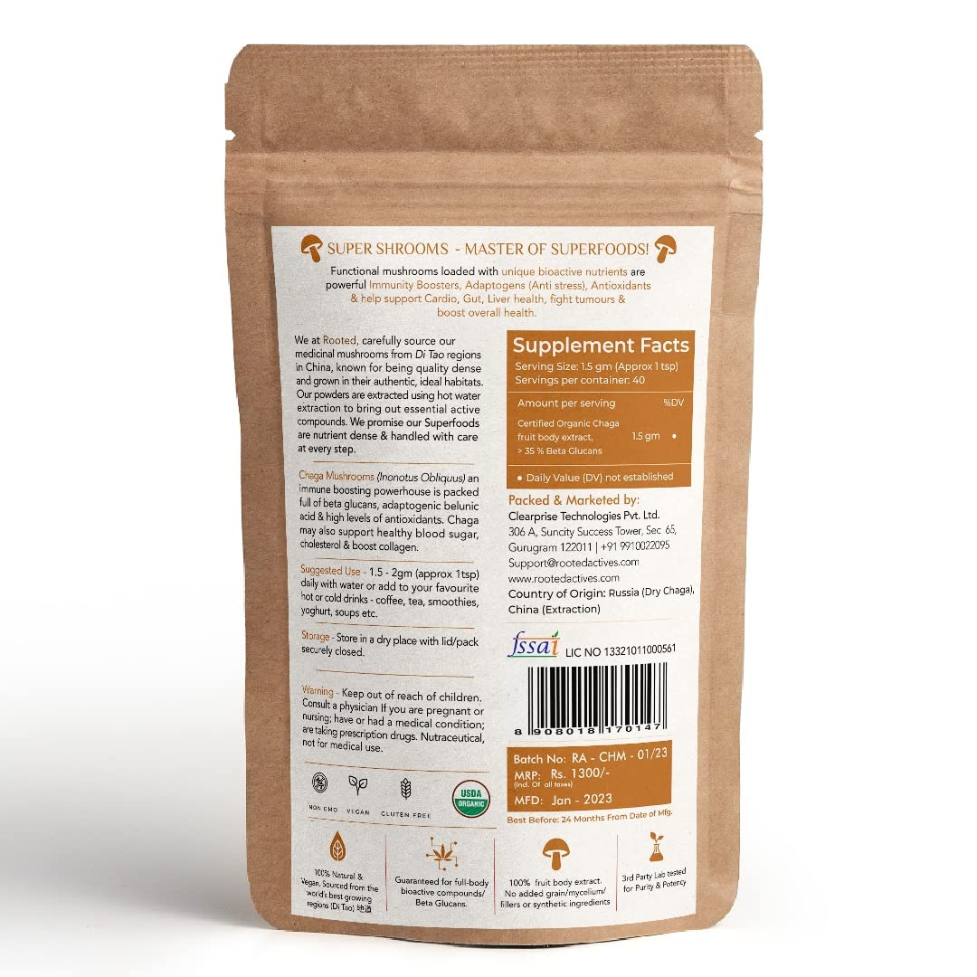 Rooted Chaga Mushroom Extract Powder 60 Gmâ¦
