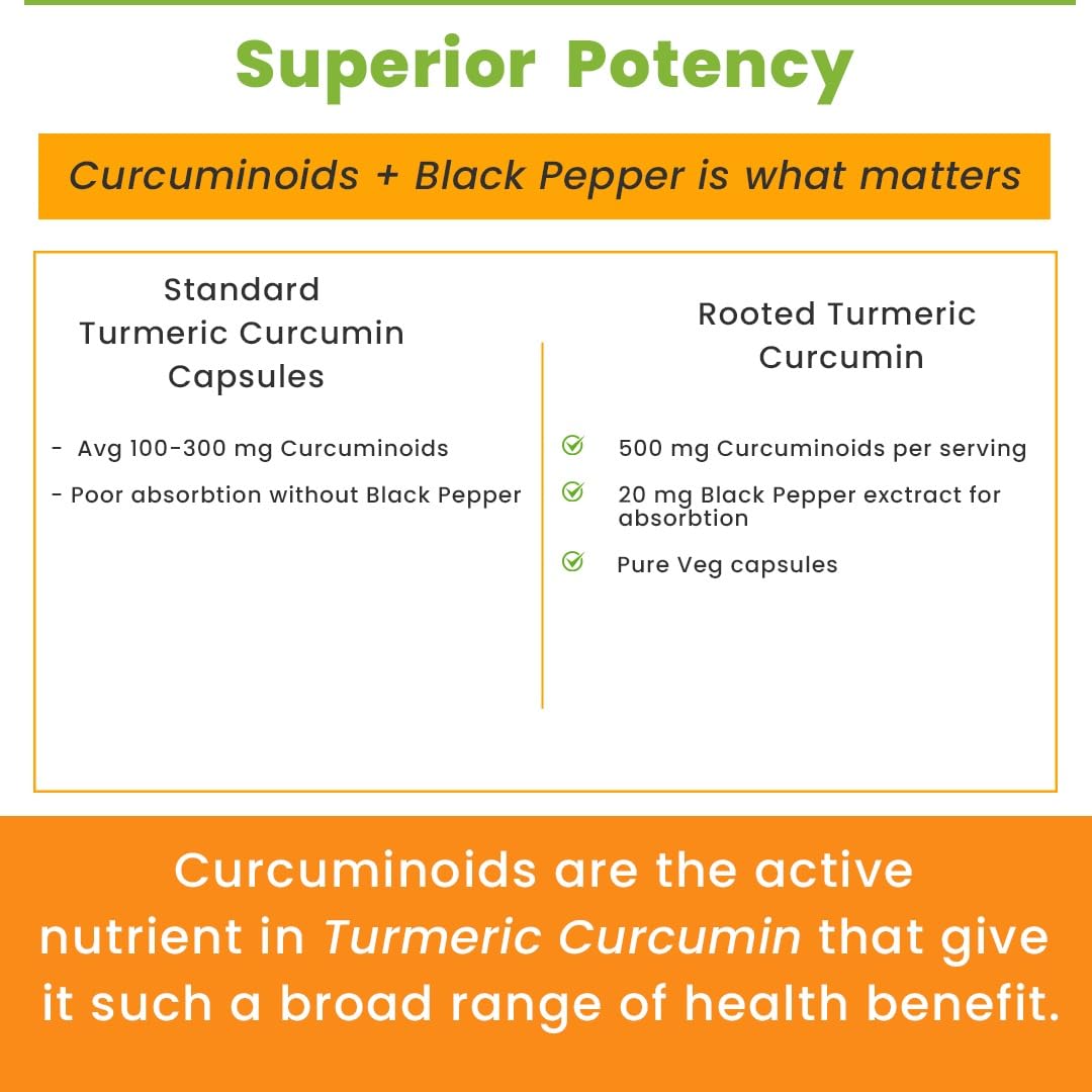 • Potency as it should be! - Our turmeric curcumin with black pepper formulation ensures the optimal potency with 500 mg of curcumimoids standardized to 95% & fortified with piperine for better absorption