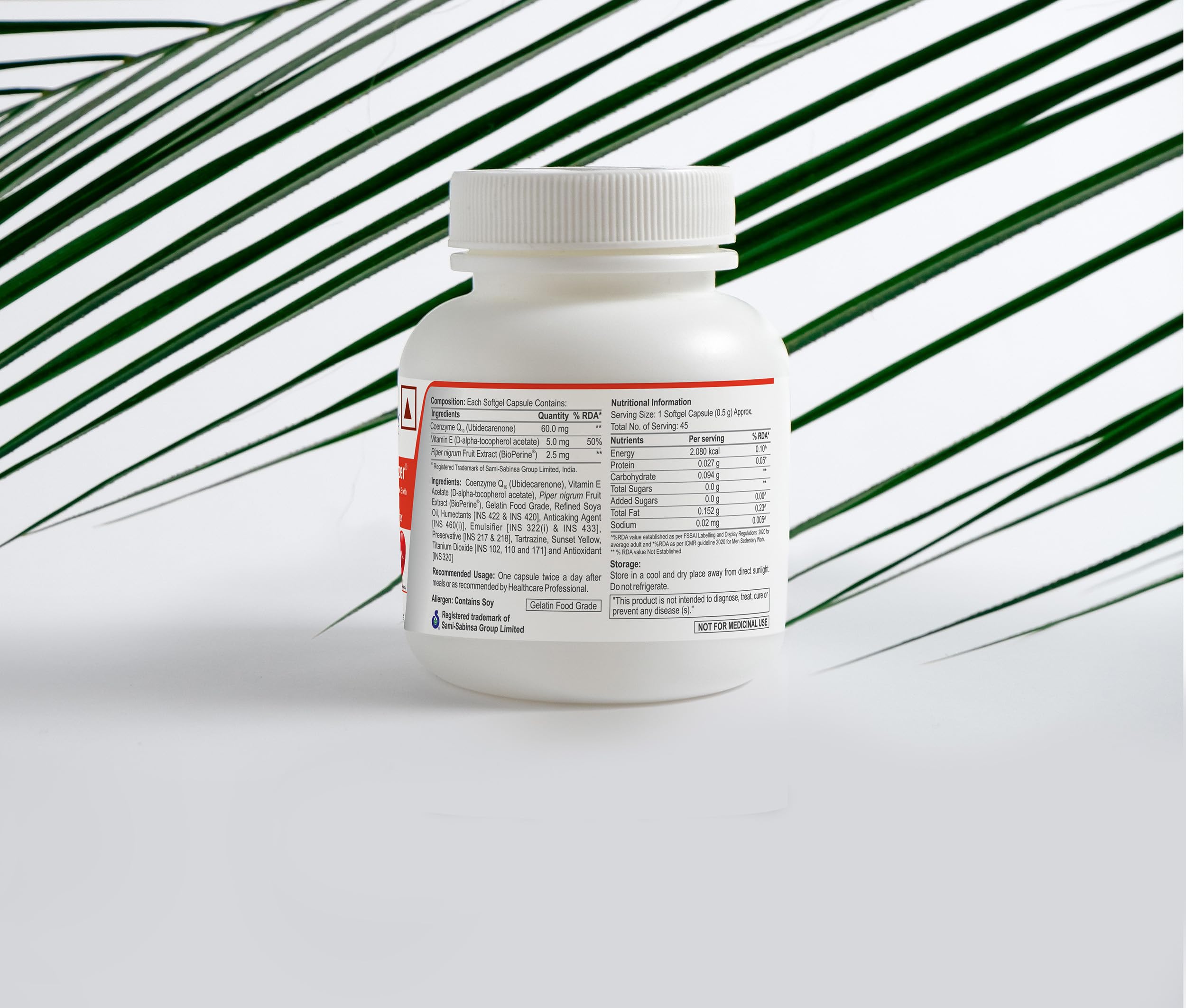 CoQ Energizer is a cellular bio-energizer containing unique combination of CoQ10 Vitamin E & BioPerine a bioavailability enhancer. CoQ10 is produced inside the body and in the âPowerhouse of Cellsâ the mitochondria.