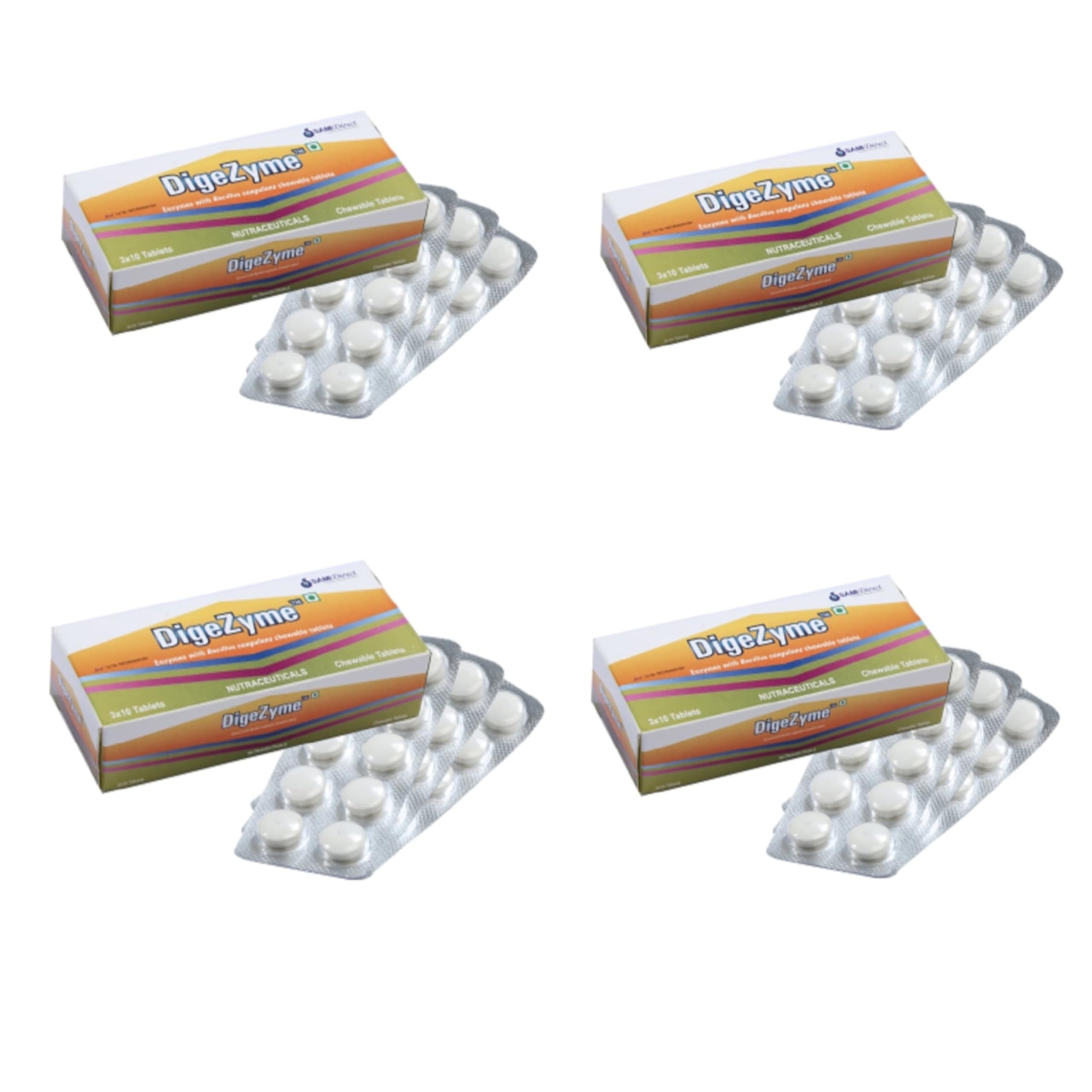 Sami Direct DigeZyme Digestive Enzyme Chewable Tablets offer comprehensive digestive support in a convenient chewable format. Formulated with a multi-enzyme blend DigeZyme helps break down carbohydrates proteins fats and fibersâpromoting optimal nutrient absorption and gut comfort. Ideal for daily use especially after meals these chewables support a healthy digestive system without the need for water or swallowing pills.