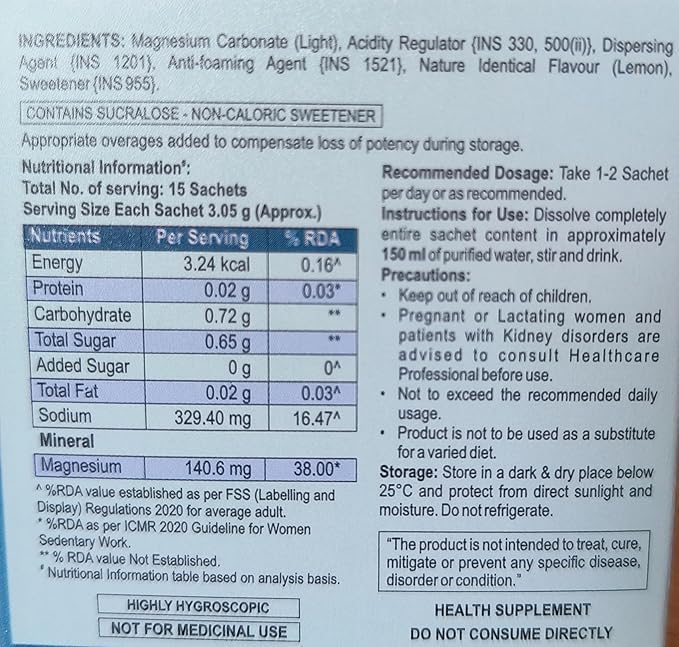 Experience effortless magnesium supplementation with these convenient effervescent granules. Simply dissolve in water for a refreshing drink that delivers your daily magnesium needs. These granules offer a pleasant way to support your body's magnesium requirements essential for numerous bodily functions. The effervescent formula ensures optimal absorption and makes it easy to incorporate into your daily wellness routine. Perfect for those who prefer not to swallow tablets or capsules these granules dissolve quickly and completely. The portable packaging allows you to maintain your supplement routine even while travelling. Each serving provides a measured dose of magnesium in an easily digestible form. Ideal for adults looking to support their magnesium intake through a convenient delivery method. Store in a cool dry place and always ensure the container is tightly sealed after use.