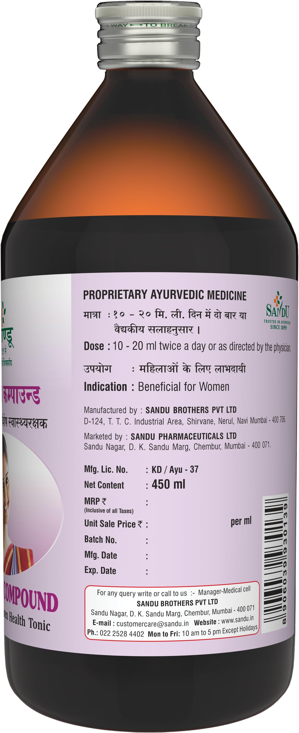 Sandu Ashoka compound is an natural ingredients based formula to balance hormonal changes in females.About Brand:-Sandu Pharmaceuticals also popularly called Sandu Ayurveda by people is one of the renewed brands when it comes to Ayurvedic health care products or medicines. Sandu Ayurveda Medicines are backed by a rich heritage and more than 120 years in the manufacture and marketing of Ayurvedic medicines.Sandu is an ISO 9001:2000 certified group of companies. It is the best place to explore the world of Ayurveda ayurvedic medicines and to buy medicines online. Ayurveda has been a part of the great heritage of Indian science. During British rule Ayurveda was not considered an idealistic way of medicine and was looked down upon by modern classes but it was during these adverse times that a few inspired people staked their lives to restore glory to this magnificent legacy.The name âSanduâ leads in this roll call of honour. On 10th May 1899 Sandu Brothers chose to reinvent the manufacturing of Ayurvedic medicines. Their commitment to spread and educate about the goodness of Ayurveda and bringing health even to the poor are the ideals that have been the foundation of their success.The name Sandu now stands as a benchmark of quality amongst doctors practitioners and common people alike.