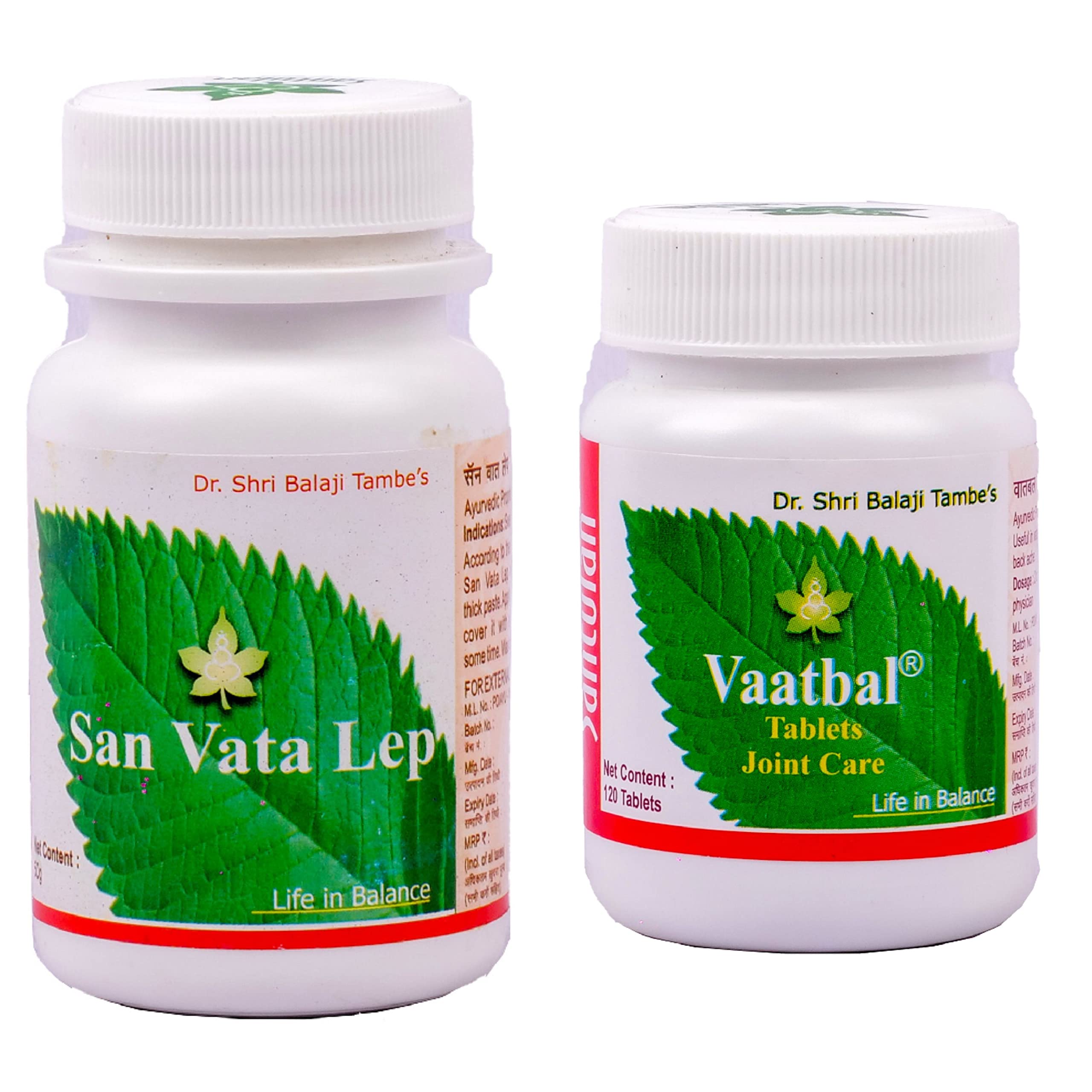 Santulan Ayurveda San Vata Lep-50GM Each (Pack Of 2) and Vaatbal Tablet-120Tab (Pack Of 2) Pain Care Combo and get Golden Oldie HerbsSukanthi Pills-1gm