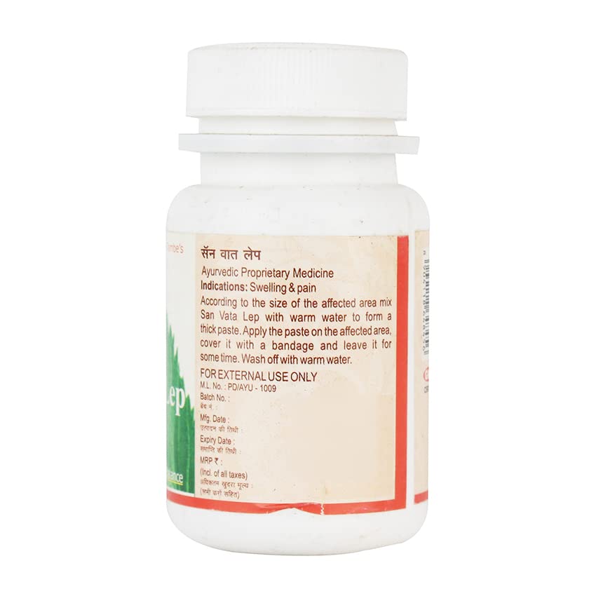 According to the size of the affected area mix San Vata Lep with warm water to form a thick paste. Apply the paste on the affected area cover it with a bandage and leave it for some time. Wash off with warm water.