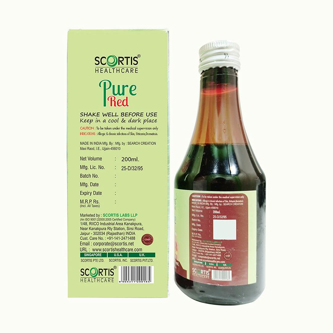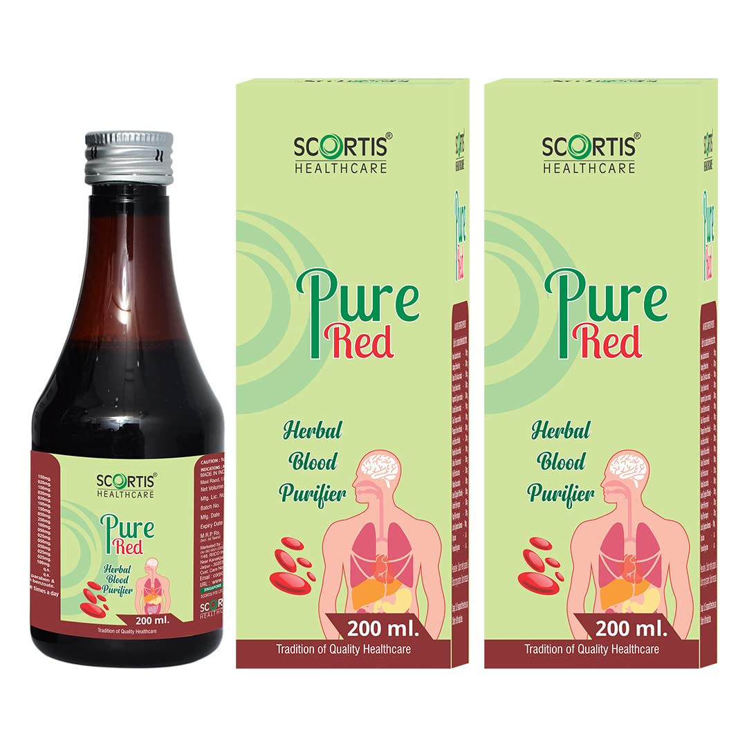 SCORTIS HEALTHCARE Pure Red Blood Purifier Syrup|Ayurvedic Formulation for Glowing Skin | Helps Flush out Impurities from Blood | Made with 100% Ayurvedic Ingredients (200 ml) Pack of 2