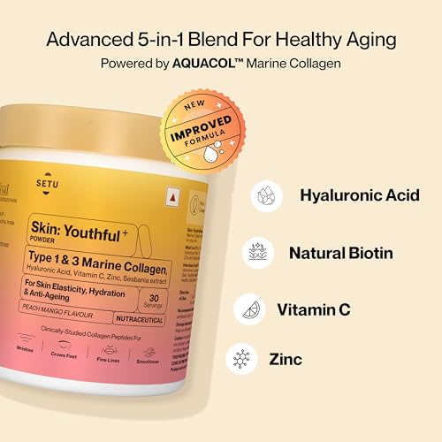 • Setu Skin: Youthful is a premium collagen powdered blend featuring Type 1 & 3 AQUACOL Marine Collagen which helps replenish collagen levels in the body. One of the best collagen supplements this hydrolyzed collagen powder helps reduce fine lines and wrink