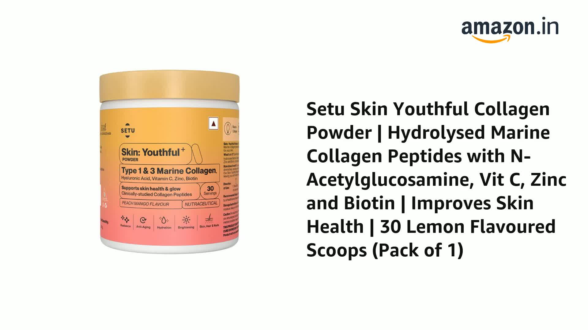Setu Skin: Youthful Marine Collagen Powder|Hydrolyzed Type 1 & 3 Collagen Supplement for Women & Men|Supports Healthy Skin,Hair & Nails|Peach Mango Flavor|210 grams x 1