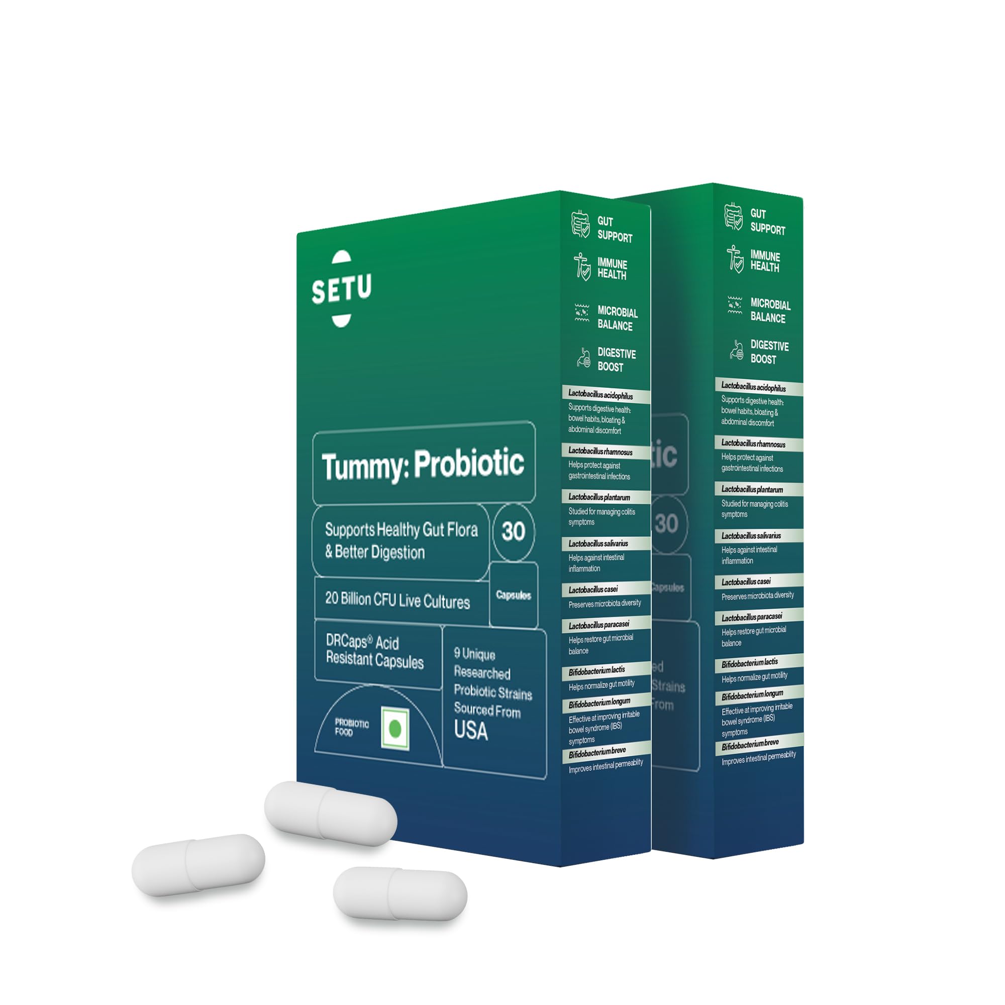 Setu Acidophilus Tummy Probiotic, 9 strains with 15 Billion CFUs for Women & Men, Fermented Probiotics Lactobacillus & Bifidobacterium, Immunity, Nutrient Absorption, Reduced Gas | Capsules 30 Count