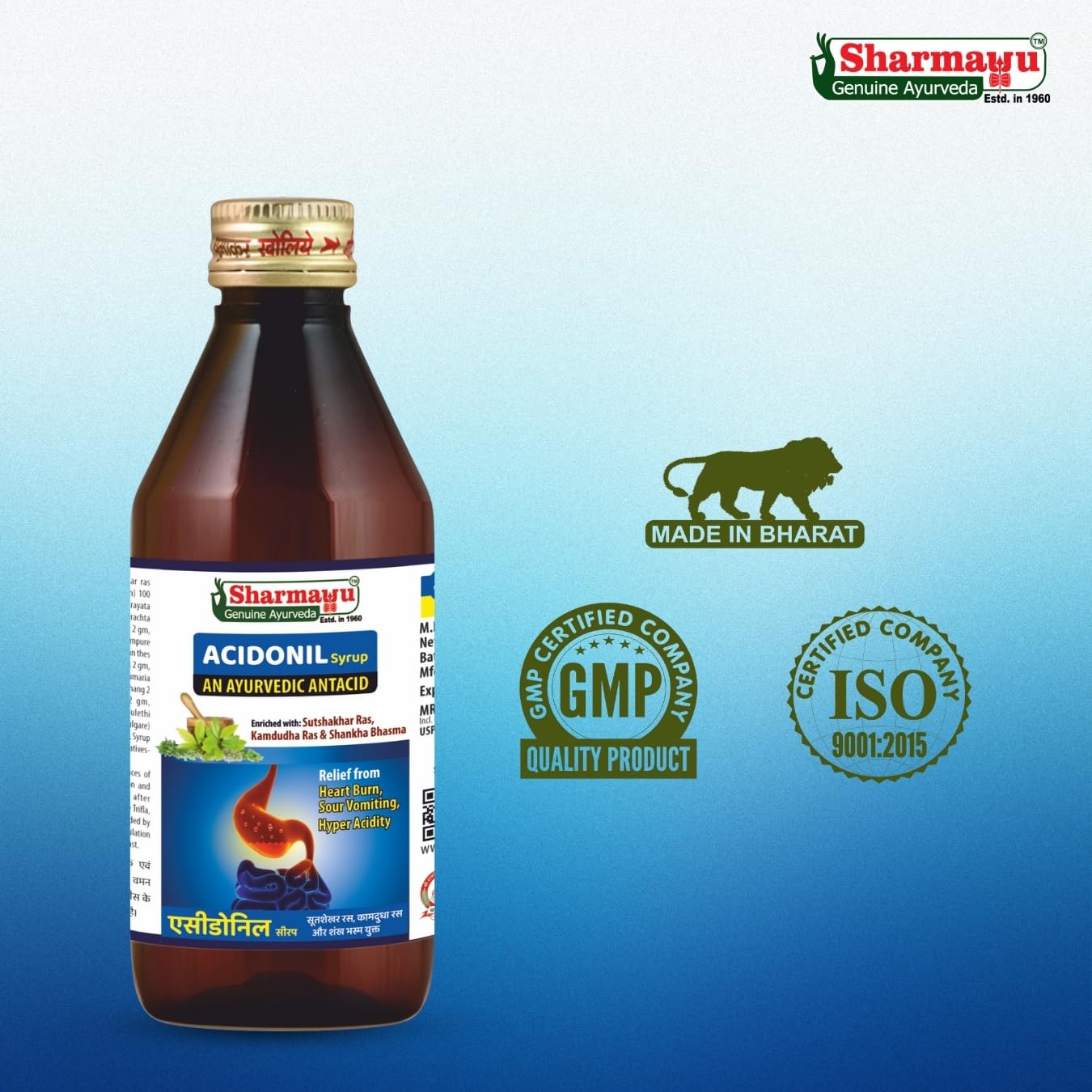 Say goodbye to the discomfort of acidity and heartburn with Acidonil Syrup – a powerful Ayurvedic antacid formulated to naturally relieve hyperacidity gastric irritation gas and related digestive issues. Crafted using time-tested Ayurvedic herbs Acidonil works by neutralizing excess stomach acid soothing the inner lining of the stomach and promoting healthy digestion. It is effective in managing gas acid reflux peptic ulcers duodenal ulcers bloating and that persistent burning sensation in the stomach. Whether you're dealing with chronic acidity or occasional heartburn Acidonil Syrup offers a gentle yet effective solution – without the side effects of chemical antacids. ???? Key Benefits Provides fast relief from acidity heartburn gas & bloating Helps in the treatment of hyperacidity and hyperchlorhydria Effective against gastric and duodenal ulcers Reduces the feeling of nausea and fullness in the abdomen Supports the body’s natural digestive balance 100% Ayurvedic & natural safe for long-term use