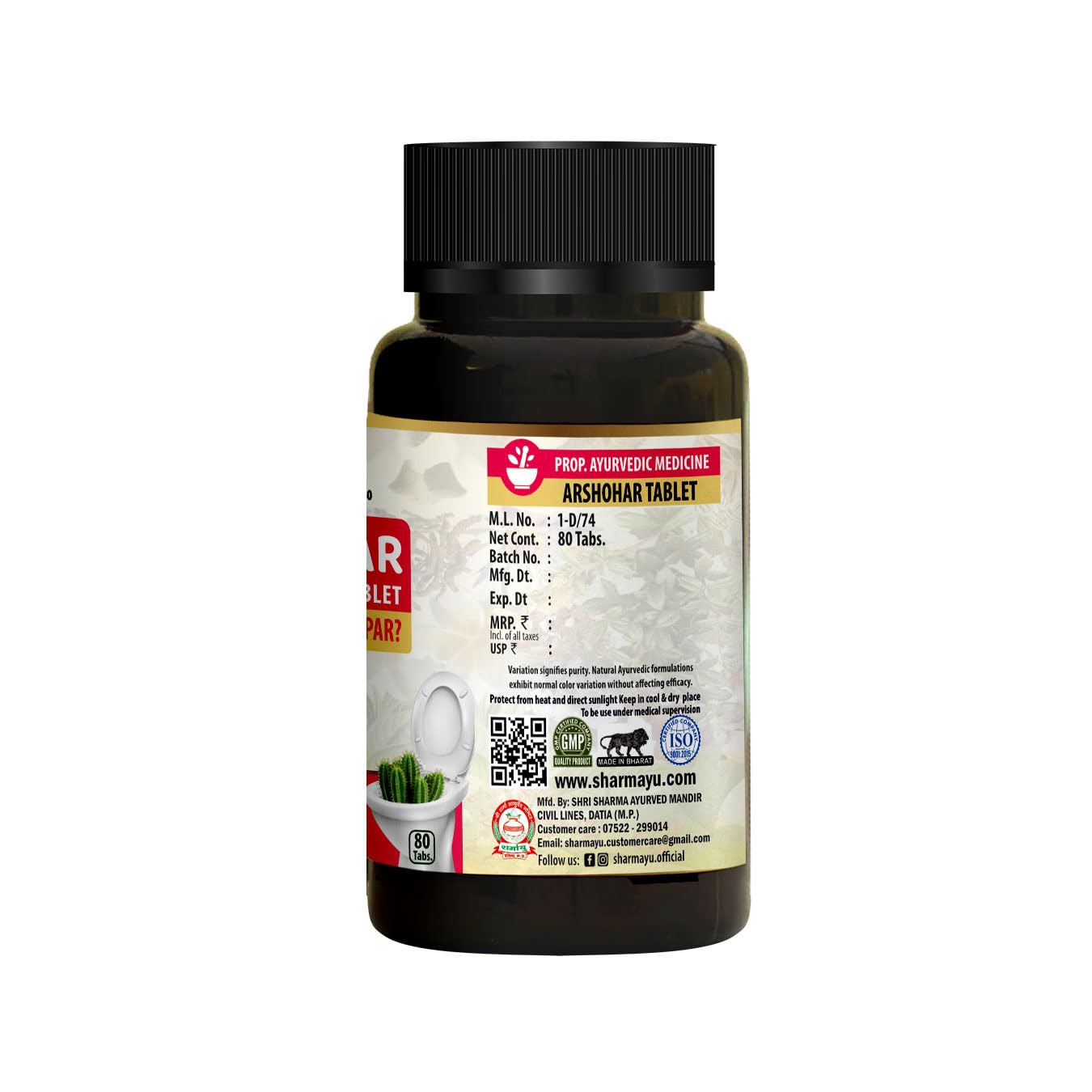 Sharmayu Arshohar Tablet is a powerful Ayurvedic solution specifically formulated to provide relief from piles (also known as hemorrhoids or “arsha”). Whether you are experiencing internal or external piles this herbal remedy is designed to tackle the root causes not just the symptoms. It combines the ancient wisdom of Ayurveda with modern manufacturing to deliver safe effective and long-lasting results. The unique formulation helps reduce the burning sensation itching and pain typically associated with piles. It also assists in shrinking swollen veins and managing bleeding during bowel movements. Unlike synthetic medications that often offer temporary relief and may have side effects Arshohar Tablet uses natural herbs that are gentle on the body and suitable for long-term use.