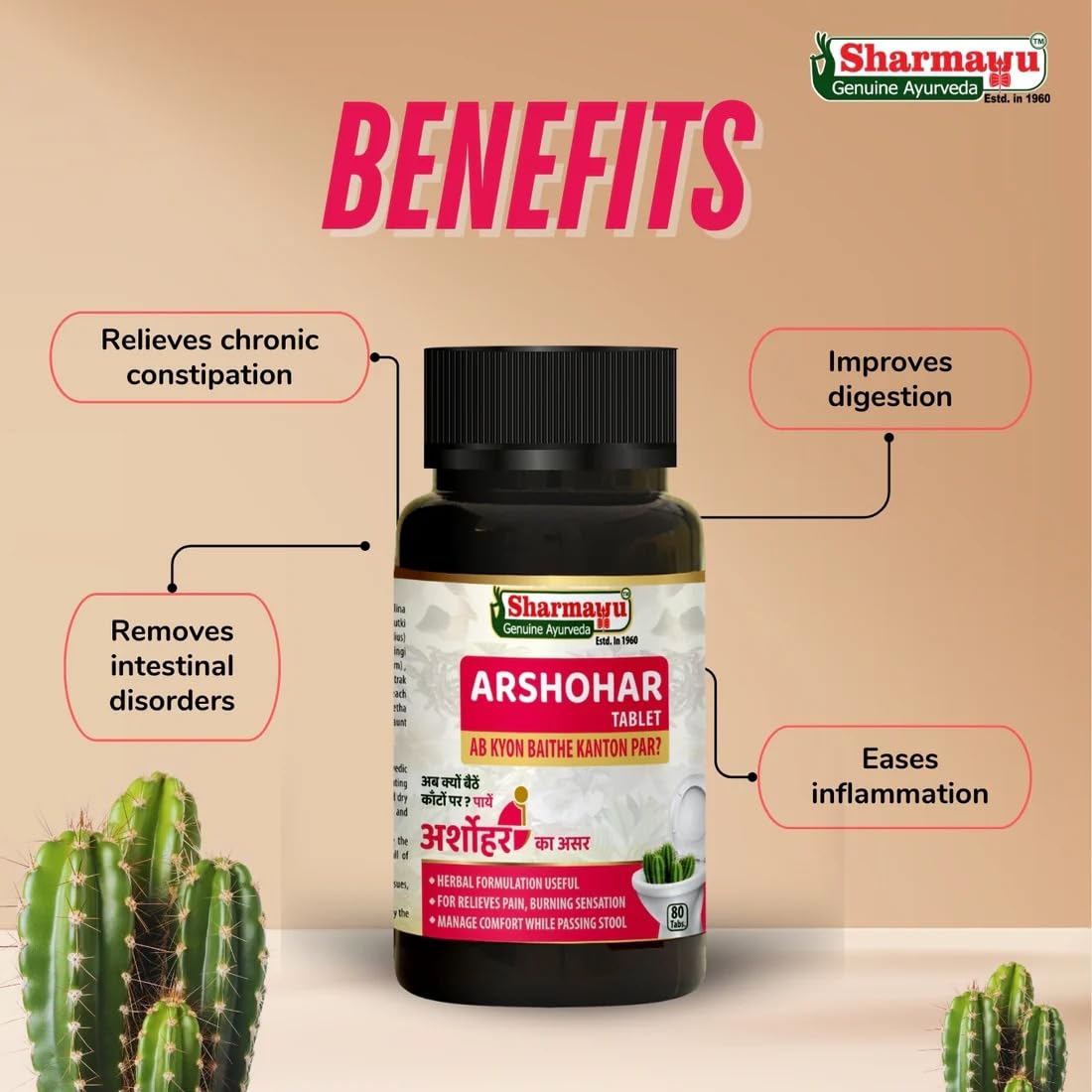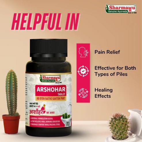Sharmayu Arshohar Tablet is a herbal dietary supplement prepared using ingredients known in Ayurveda. This product is developed by Sharmayu Ayurveda a trusted name in Ayurvedic preparations since 1890. Made from traditional herbs Arshohar is designed to be part of your wellness routine. It comes in an easy-to-use tablet form and is manufactured under hygienic conditions following good manufacturing practices. The ingredients used are selected for their historical use in Ayurveda. This supplement does not contain any artificial preservatives or chemicals. It is recommended to use as per the suggested dosage or as advised by a registered practitioner. This product is not intended to diagnose treat cure or prevent any disease. It is offered as a natural herbal supplement for daily wellness support.